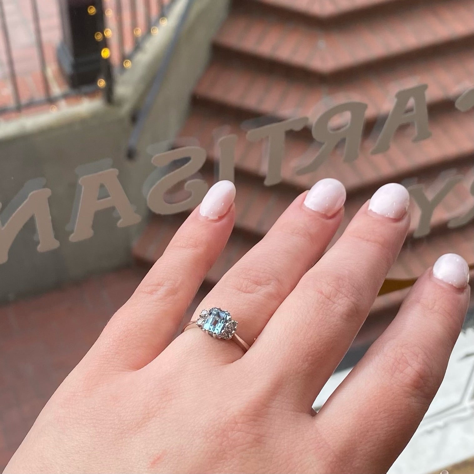 Aquamarine and Diamond Engagement Ring