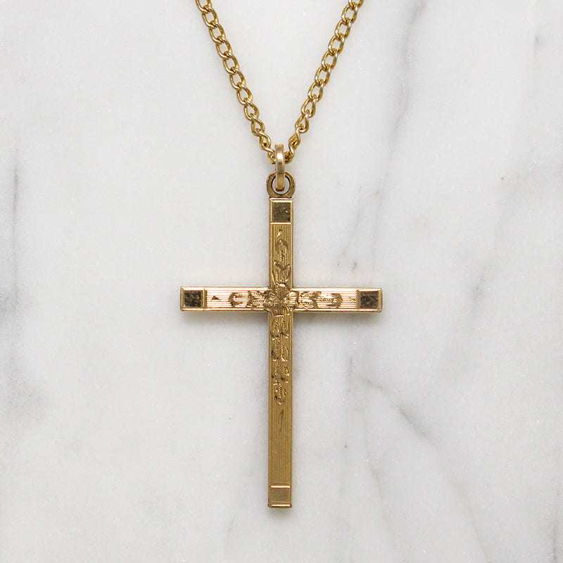Art Deco Motif Engraved Gold Filled Cross