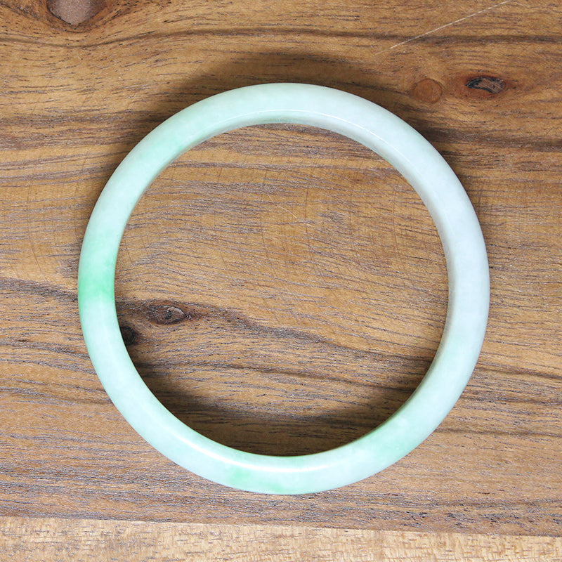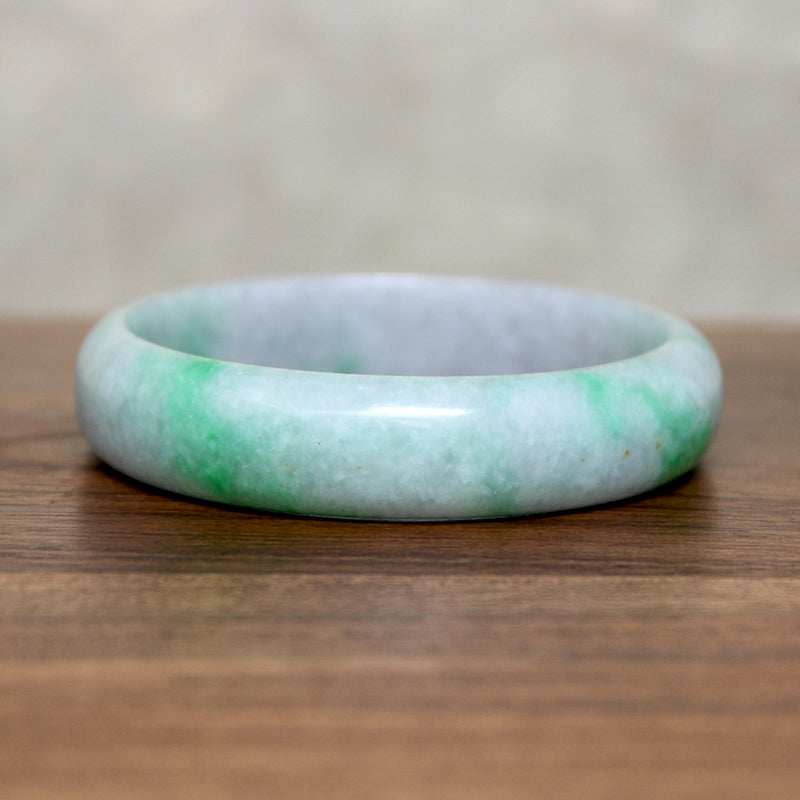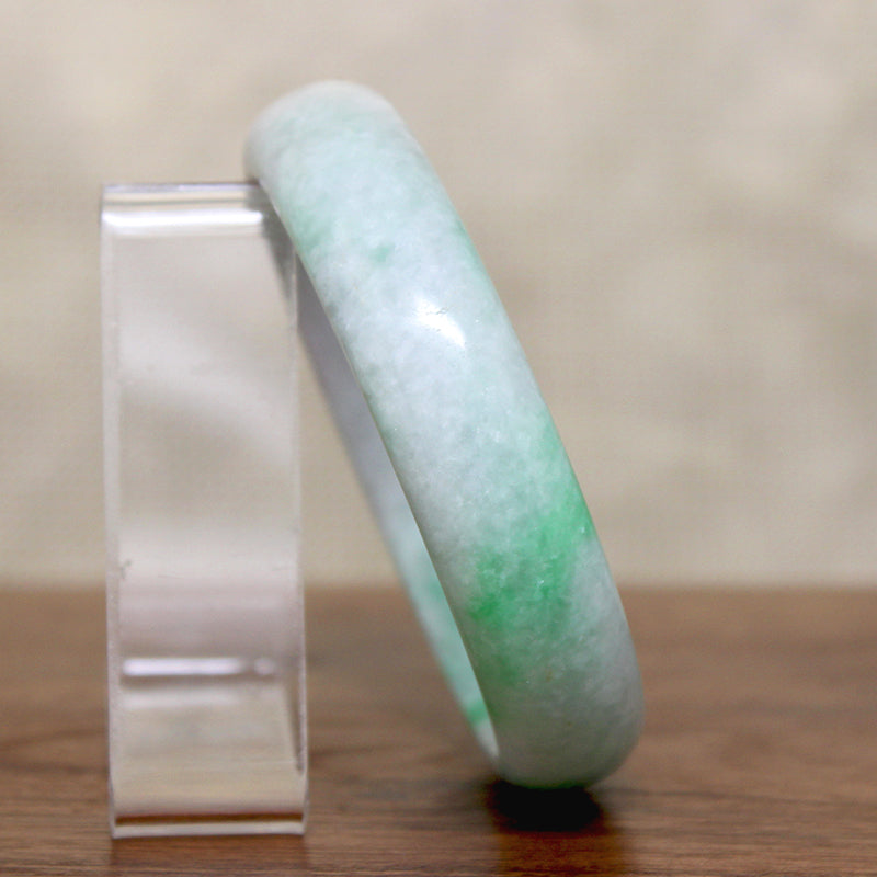 Half Round Bright Green & Celadon Jade Bangle Bracelet