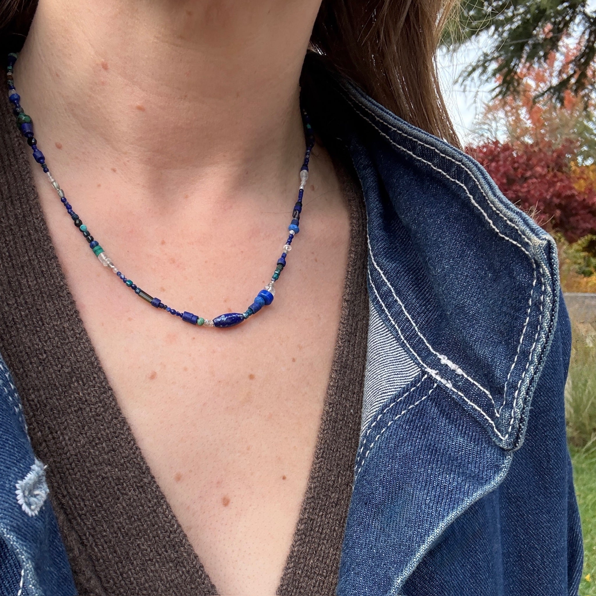 Midnight Blue & White Gemstone Bead Necklace by Brin