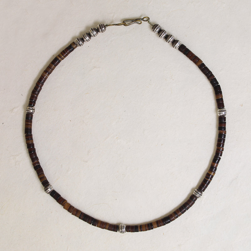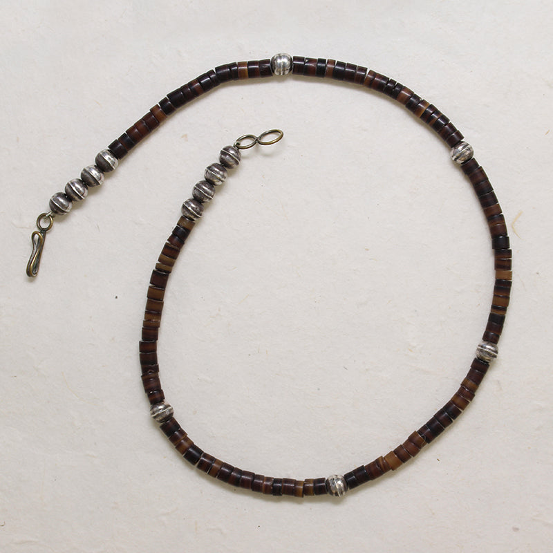 Navajo Brown Heishi Shell & Sterling Bead Necklace