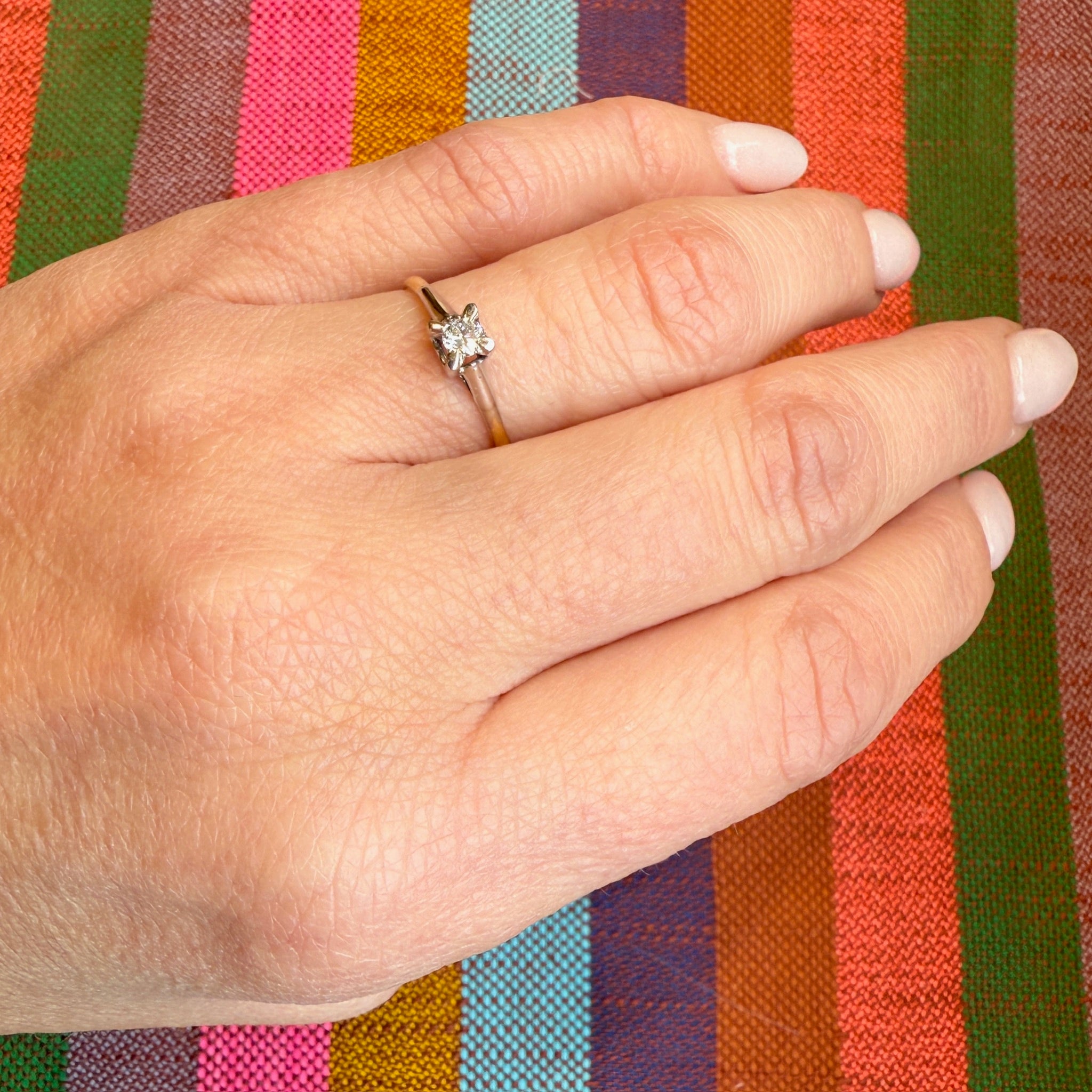 Platinum & 18ct Gold Retro Diamond Solitaire Ring