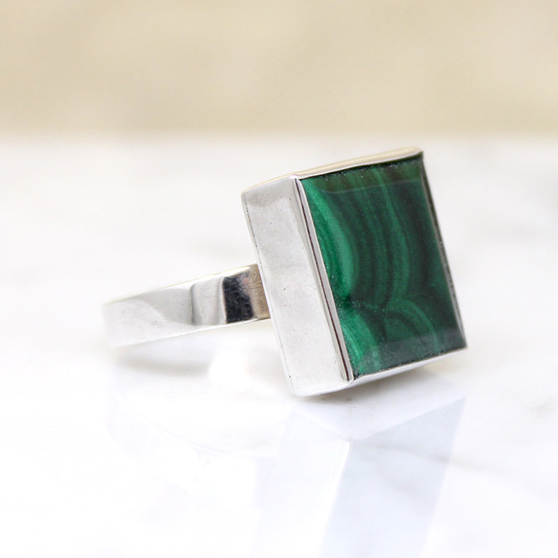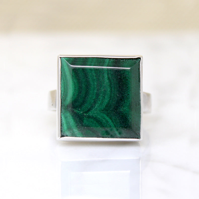 Square Malachite in Sterling Silver Ring