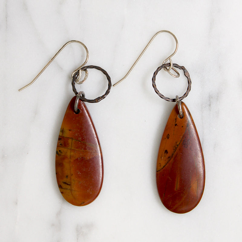 Vibrant Jasper Tear Drops & Silver Earrings by Brin