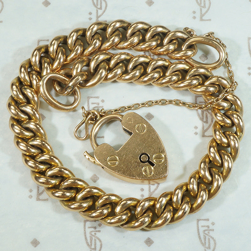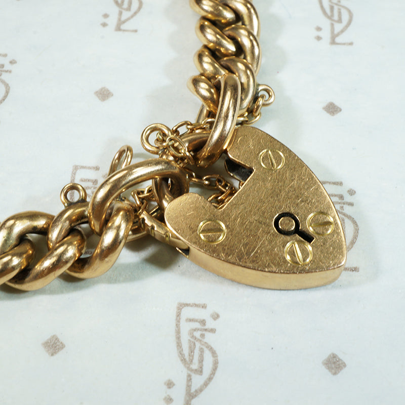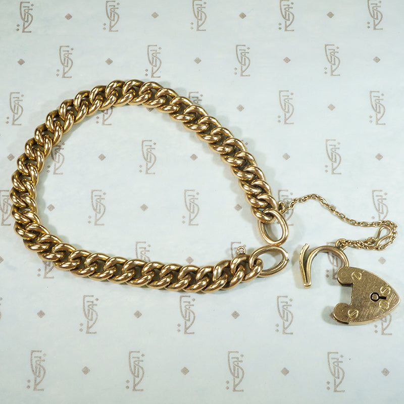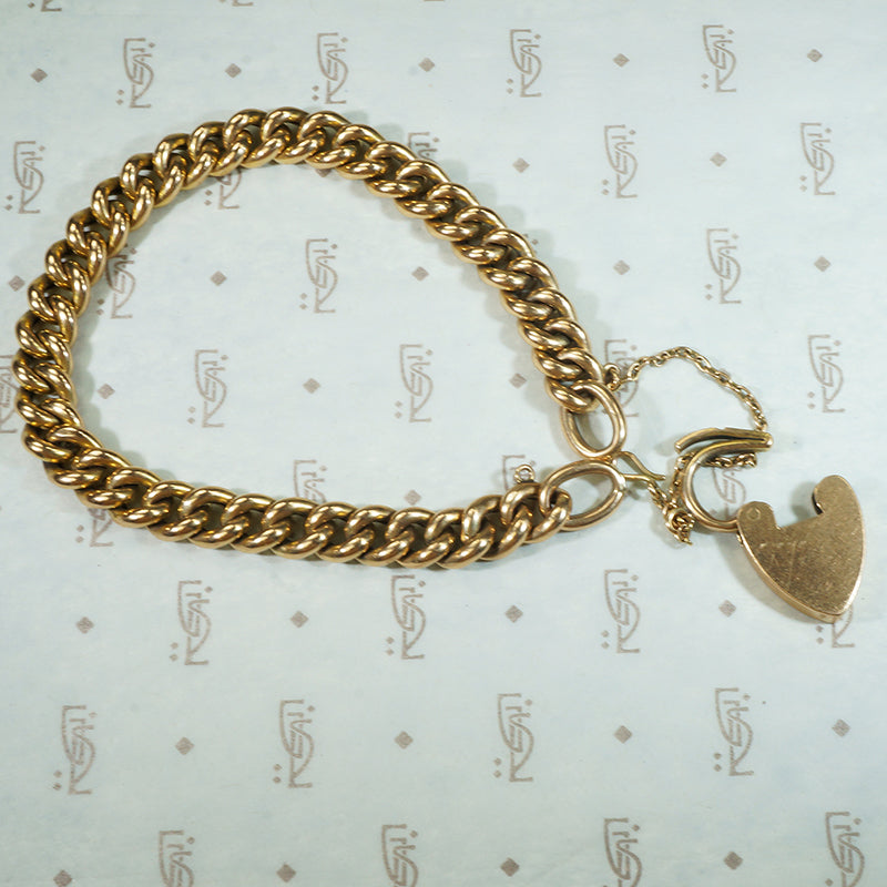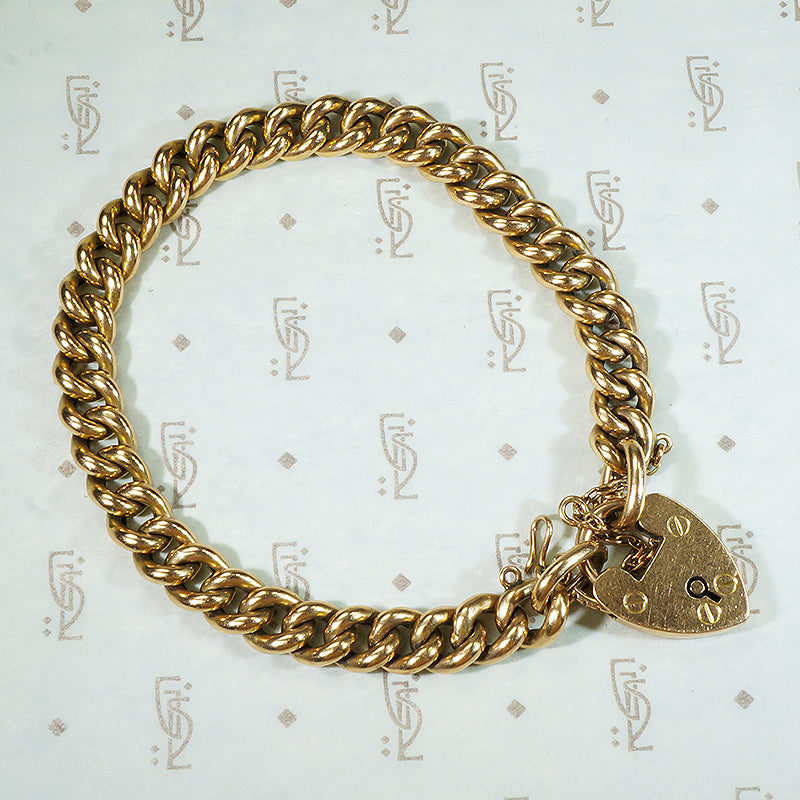 15k Gold Curb Link Bracelet with Heart Lock
