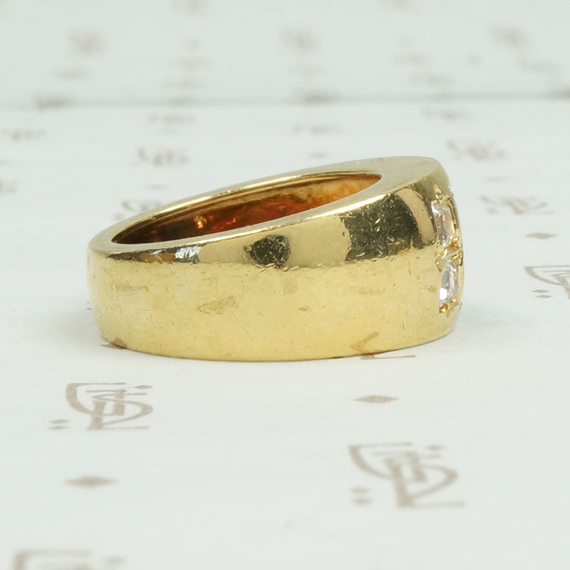 Details.....Currently a size 4. This ring may be sized up or down two sizes free of charge. Please contact us if you need this ring sized more than two sizes, it may be possible and will have a small fee. The ring measures 8.7mm at the front, and 5.2mm at the back of the band. In Very Good vintage condition, 2 of the diamonds show some wear. You should always expect some wear on vintage and antique jewels, we consider it part of the charm.