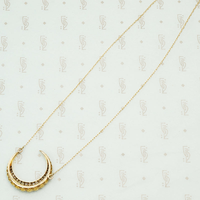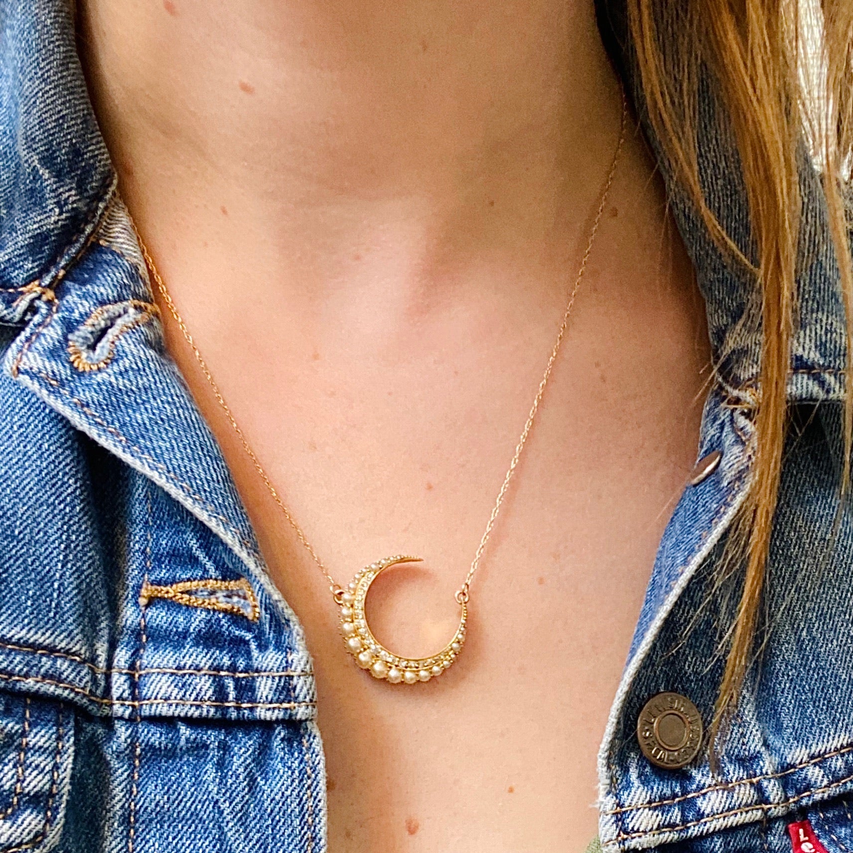 Details.....The Crescent measures 1.09" x 1.05" The chain is new 14k recycled gold, adjustable to 16" & 18" long. In Very good vintage condition.