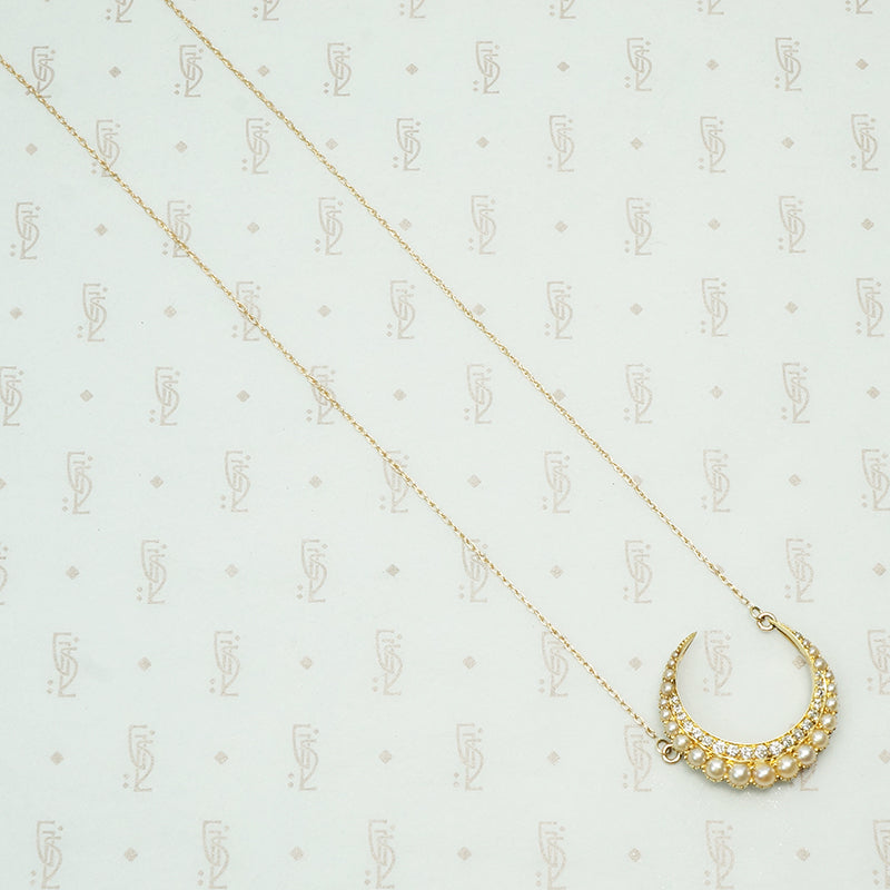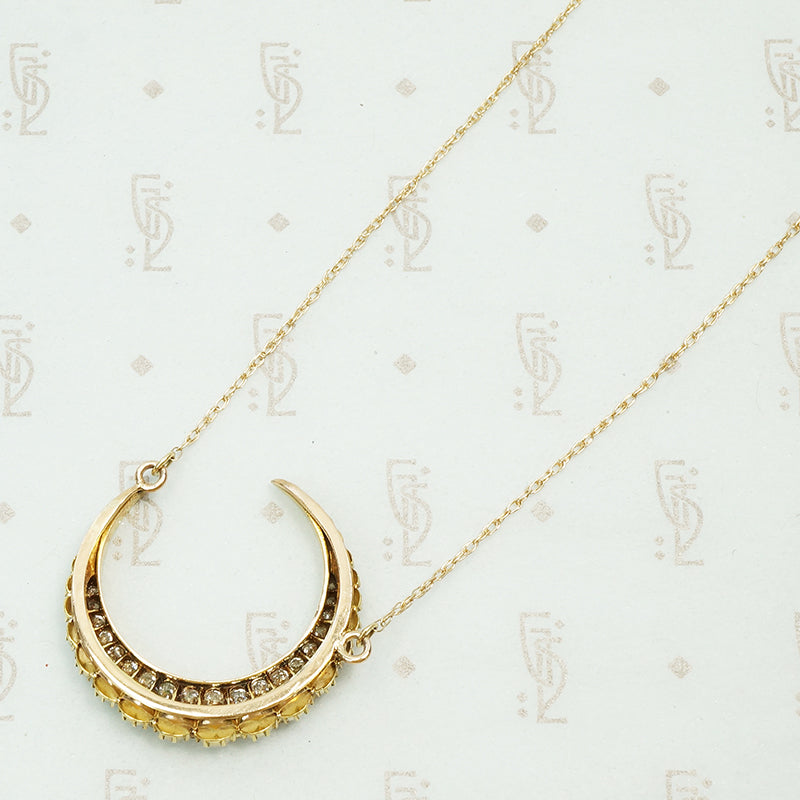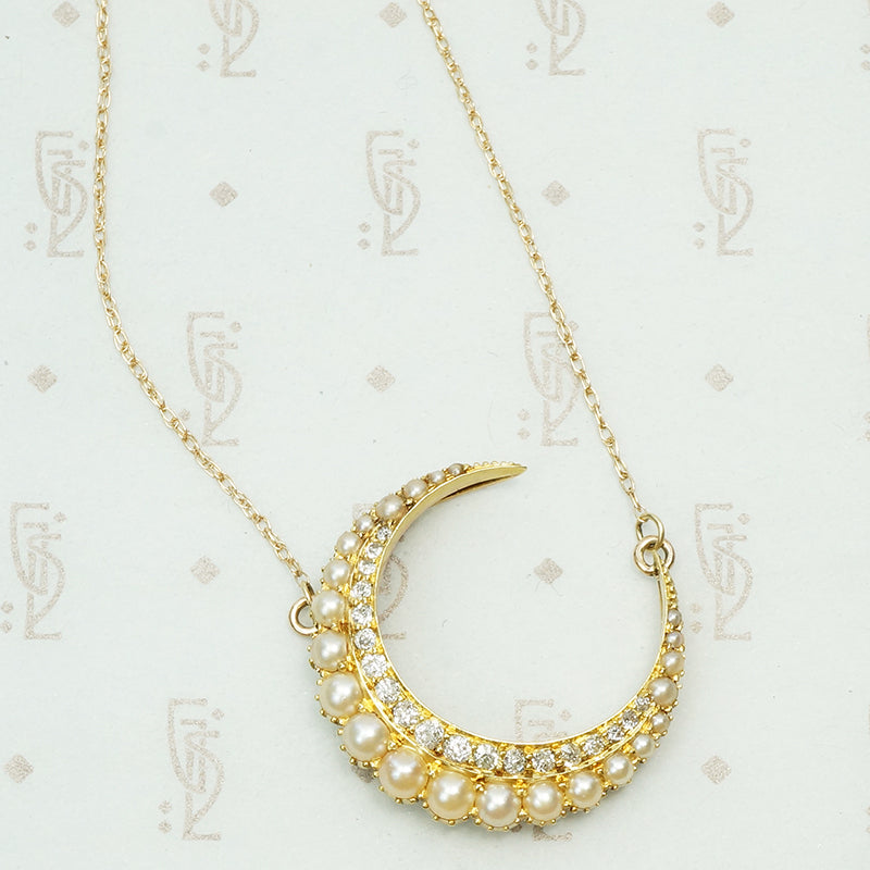 19th Century Diamond and Pearl Crescent Moon Necklace