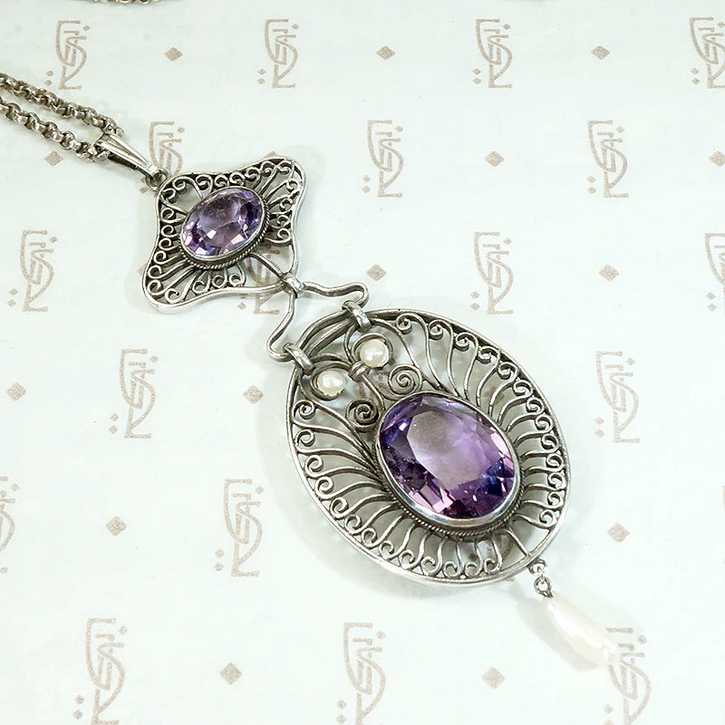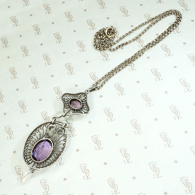 Dreamy Edwardian Amethyst & Pearl Filigree Necklace