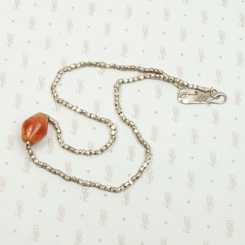 Ancient Carnelian Necklace with High Grade Silver Beads