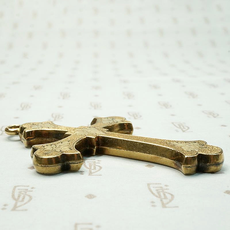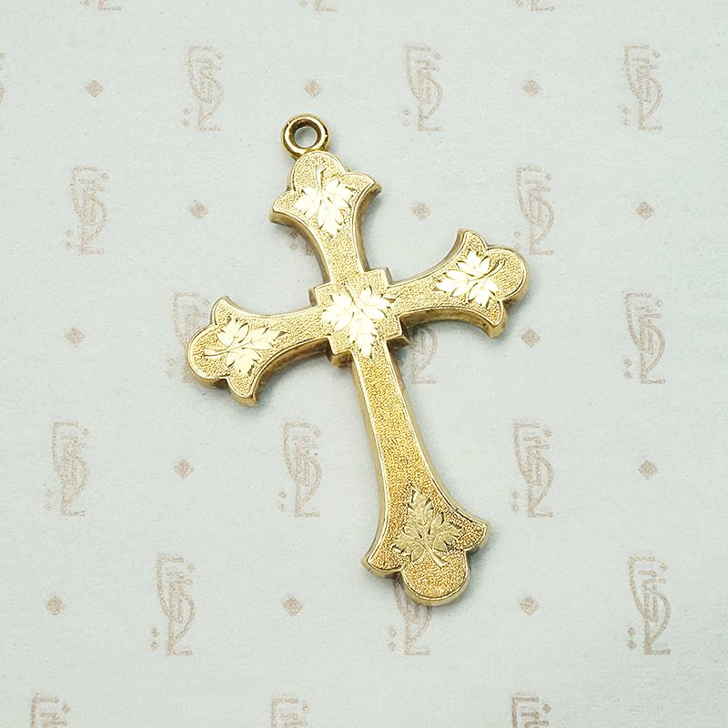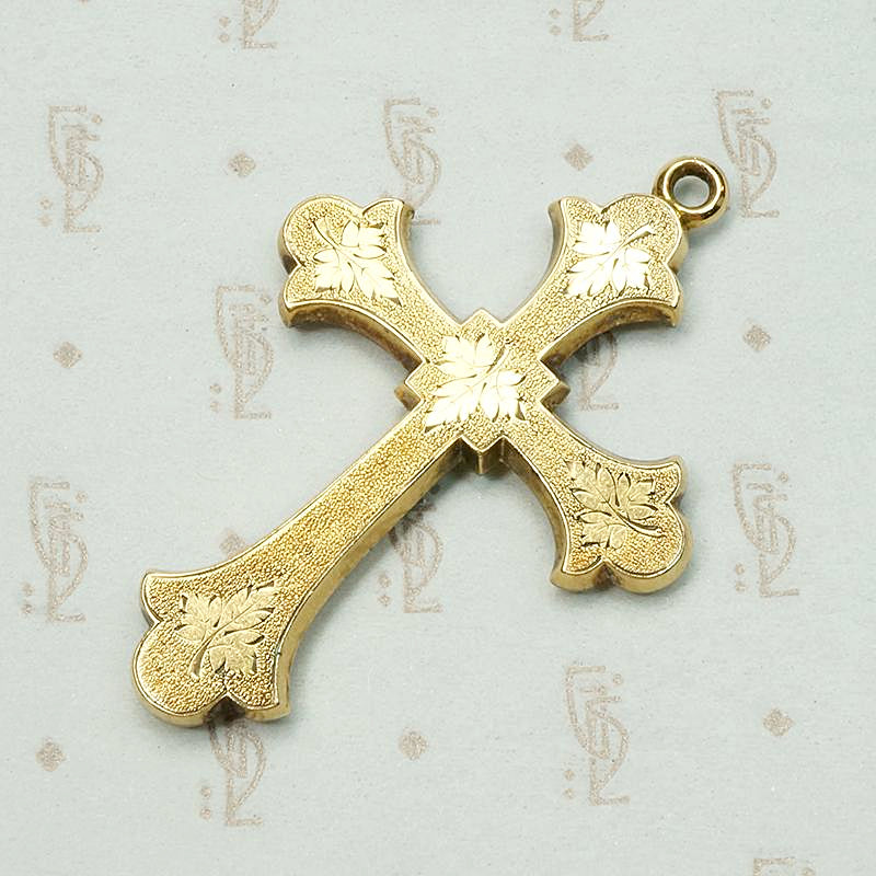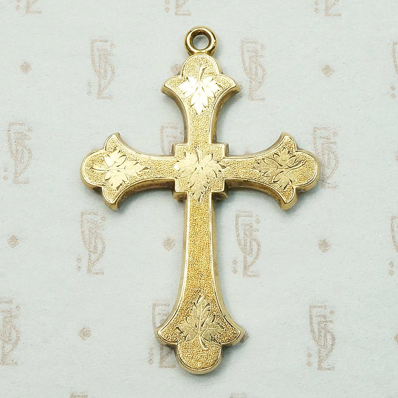 Antique Engraved Budded Cross in Luxe 18k Gold
