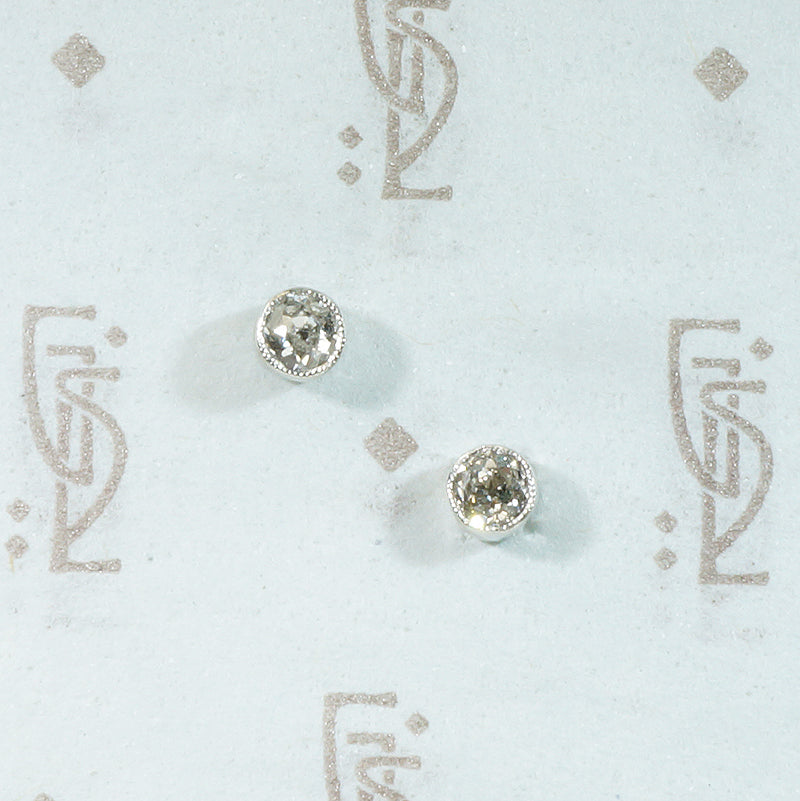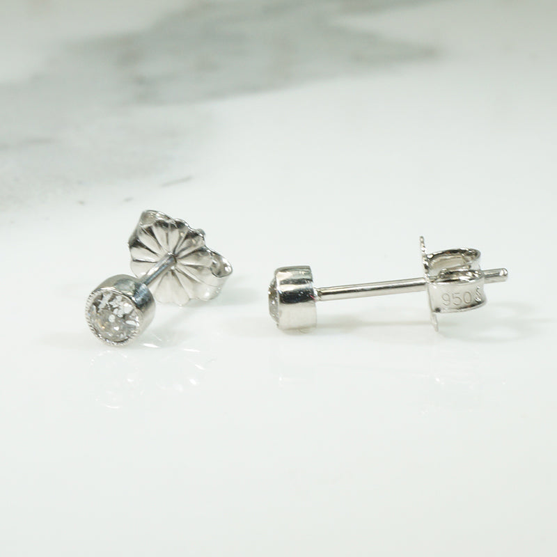 Stud earrings set with Antique Diamonds give you that classic jewelry wardrobe staple with a twist. This pair of petite beauties are in their original platinum bezels. We just added a post and back to make them into earrings. Gorgeous and ready to be your everyday earrings.
