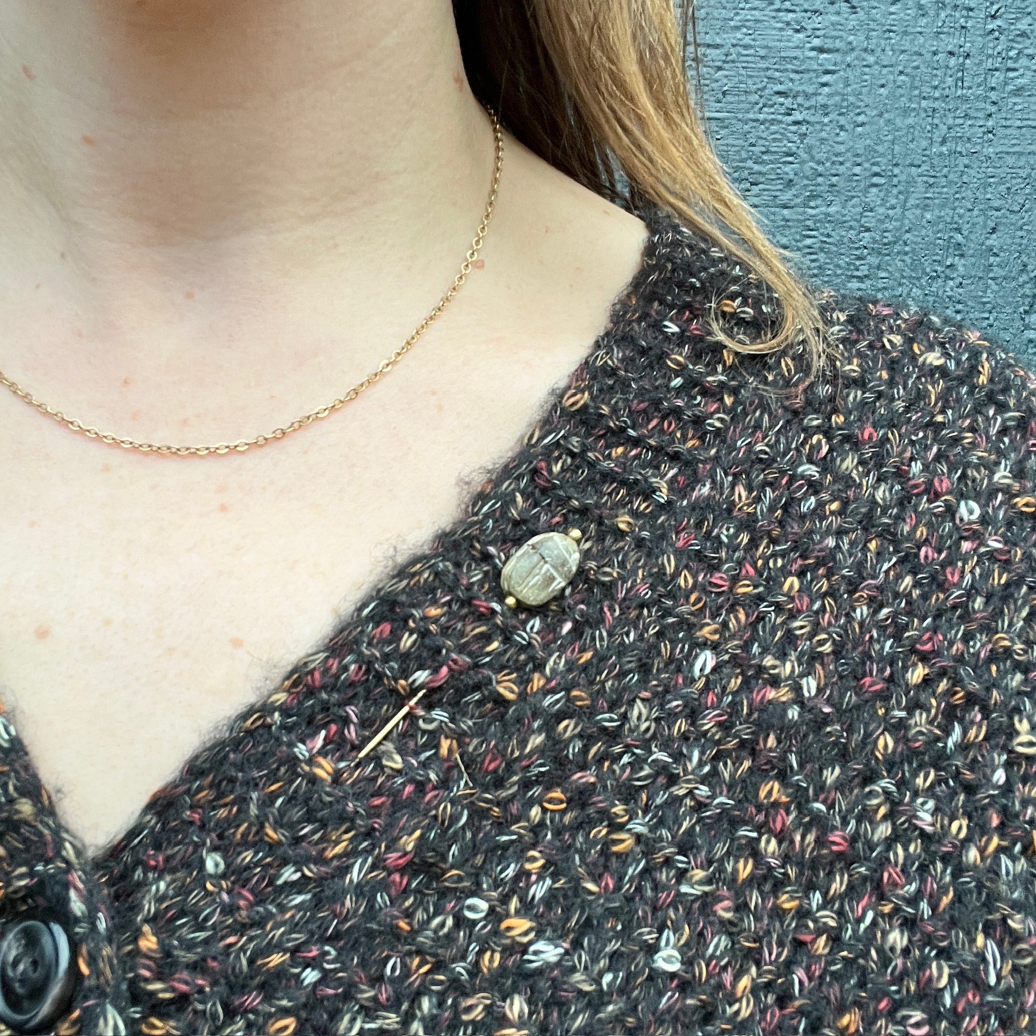 Details.....The scarab measures .62" x .45", including the frame. The pin measures 3.04" long. In Excellent Antique condition. You should always expect some wear on vintage and antique jewels; we consider it part of the charm.