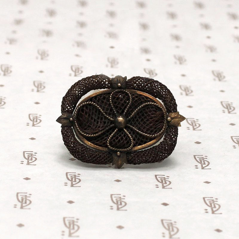 During the Victorian Era it was popular to weave your hair into a piece of jewelry as a sentimental gift for a loved one. Women saved their hair for this purpose; some wove the hair themselves while some employed specialty jewelers who would weave the hair and mount it in elaborate designs.