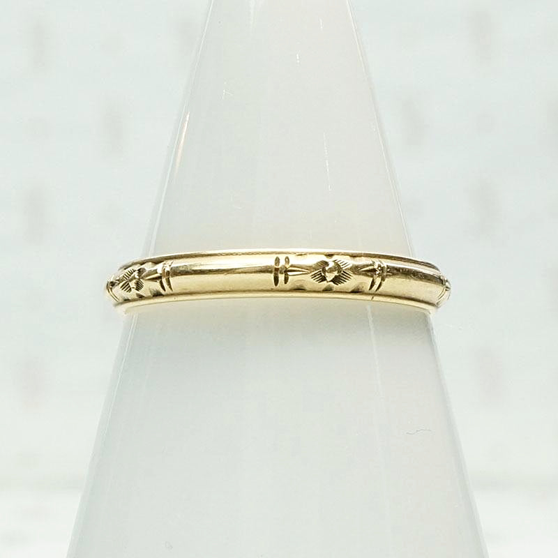 Art Deco Gold Forget Me Not Wedding Band