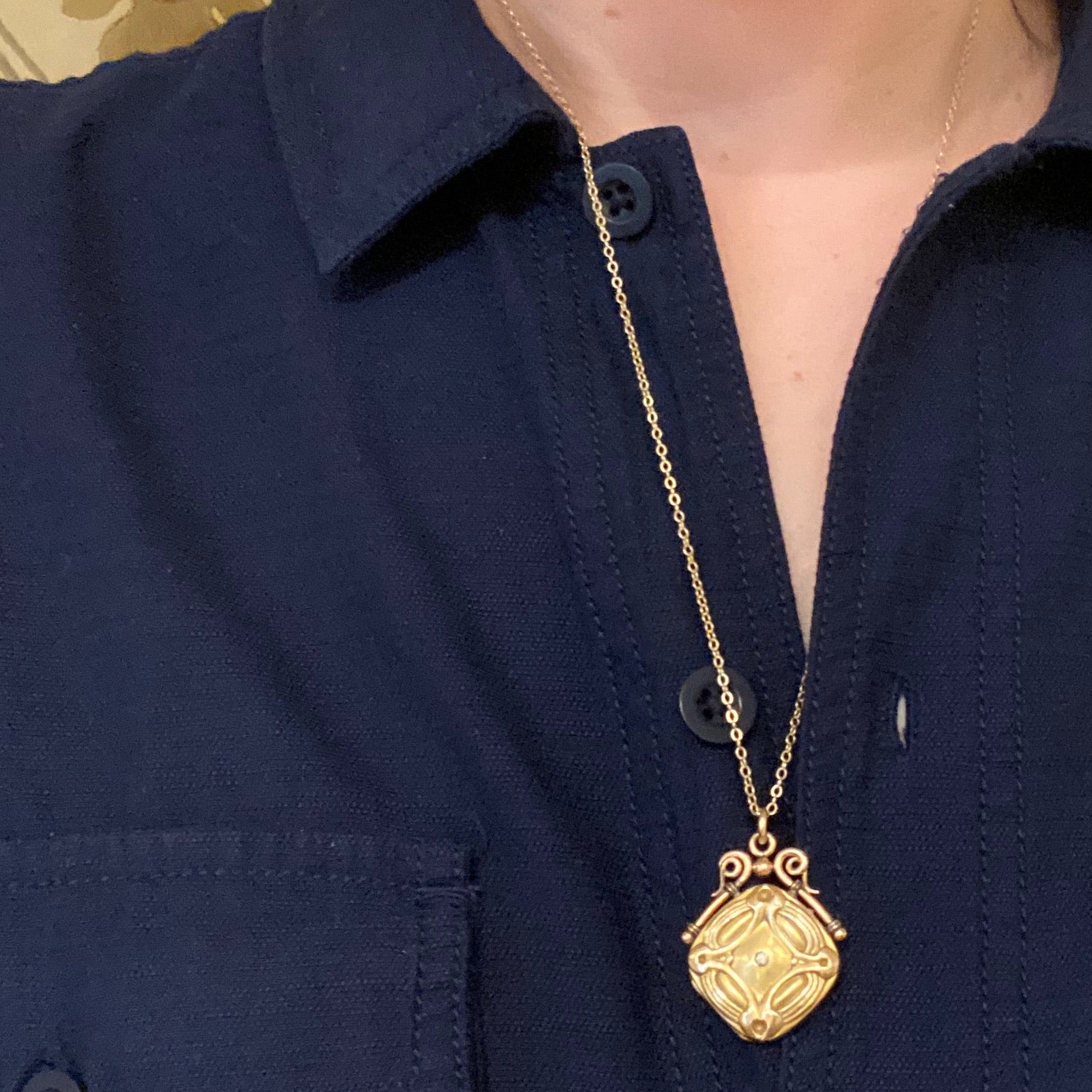 Details.....The modern gold filled chain is 22" long. The locket measures 0.98" by 1.23". In Very Good vintage condition. You should always expect some wear on vintage and antique pieces, we consider it part of the charm.