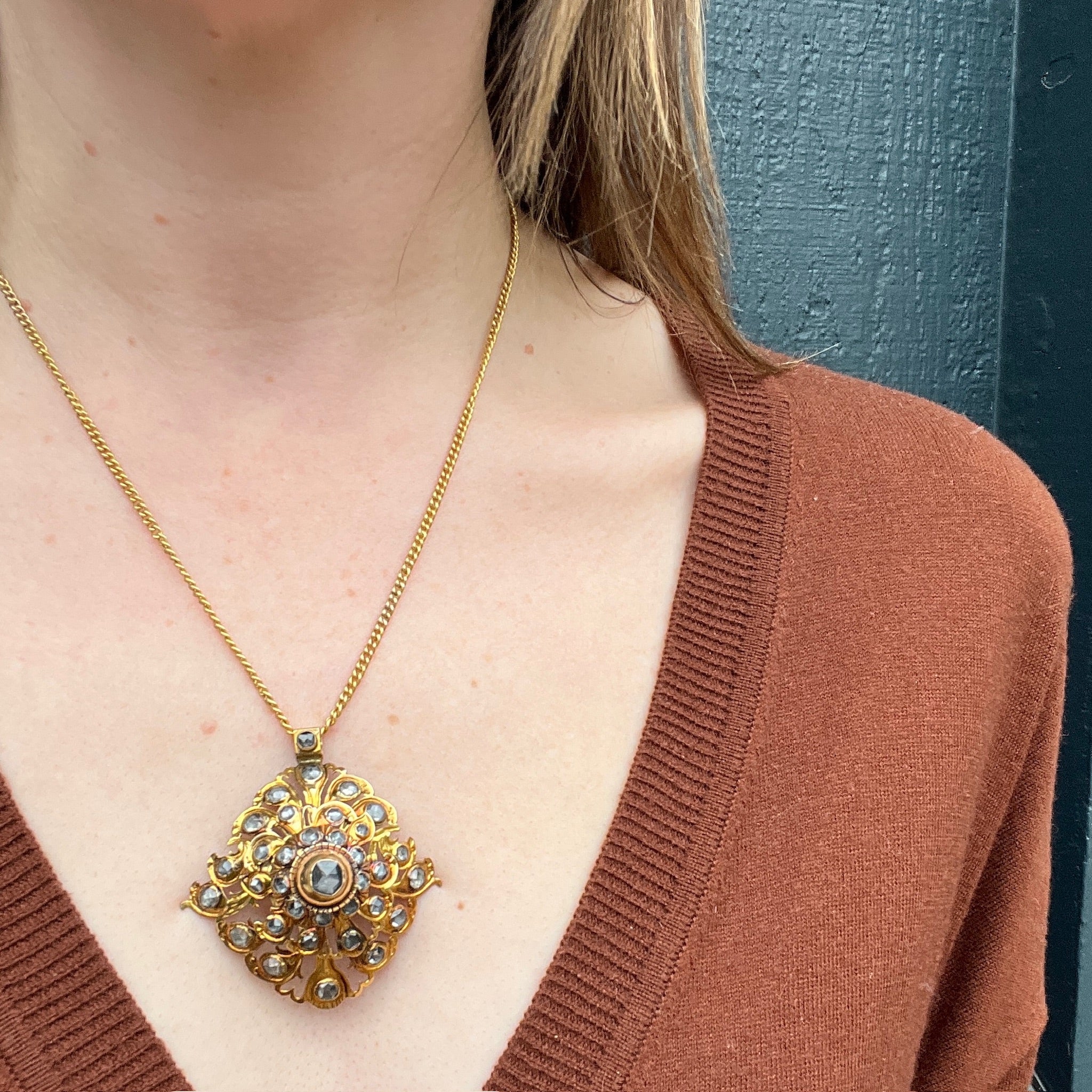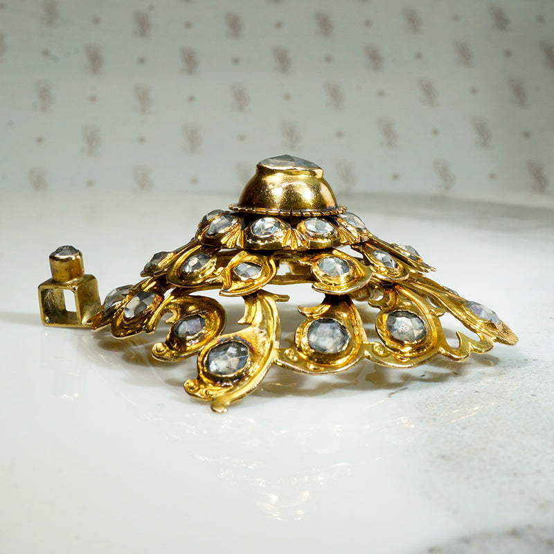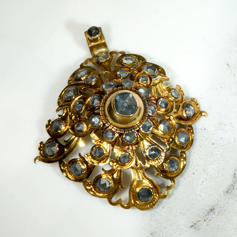 Astonishing Rose Cut White Sapphire & Gold Georgian Pendant