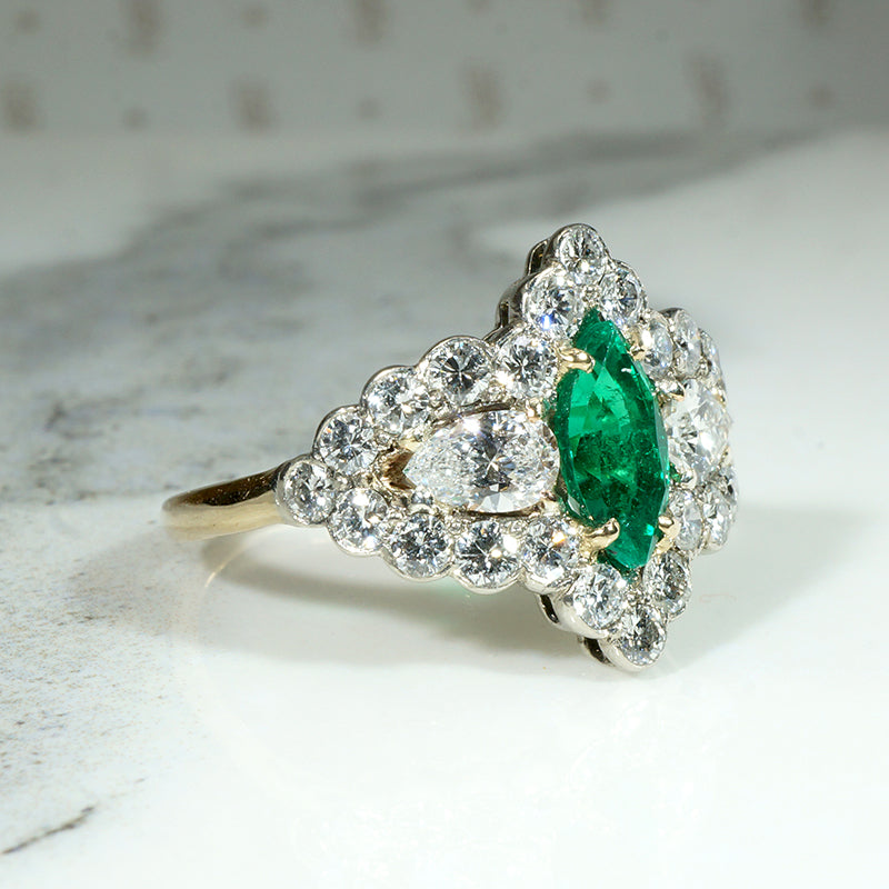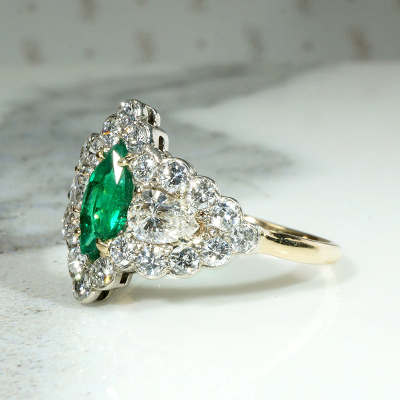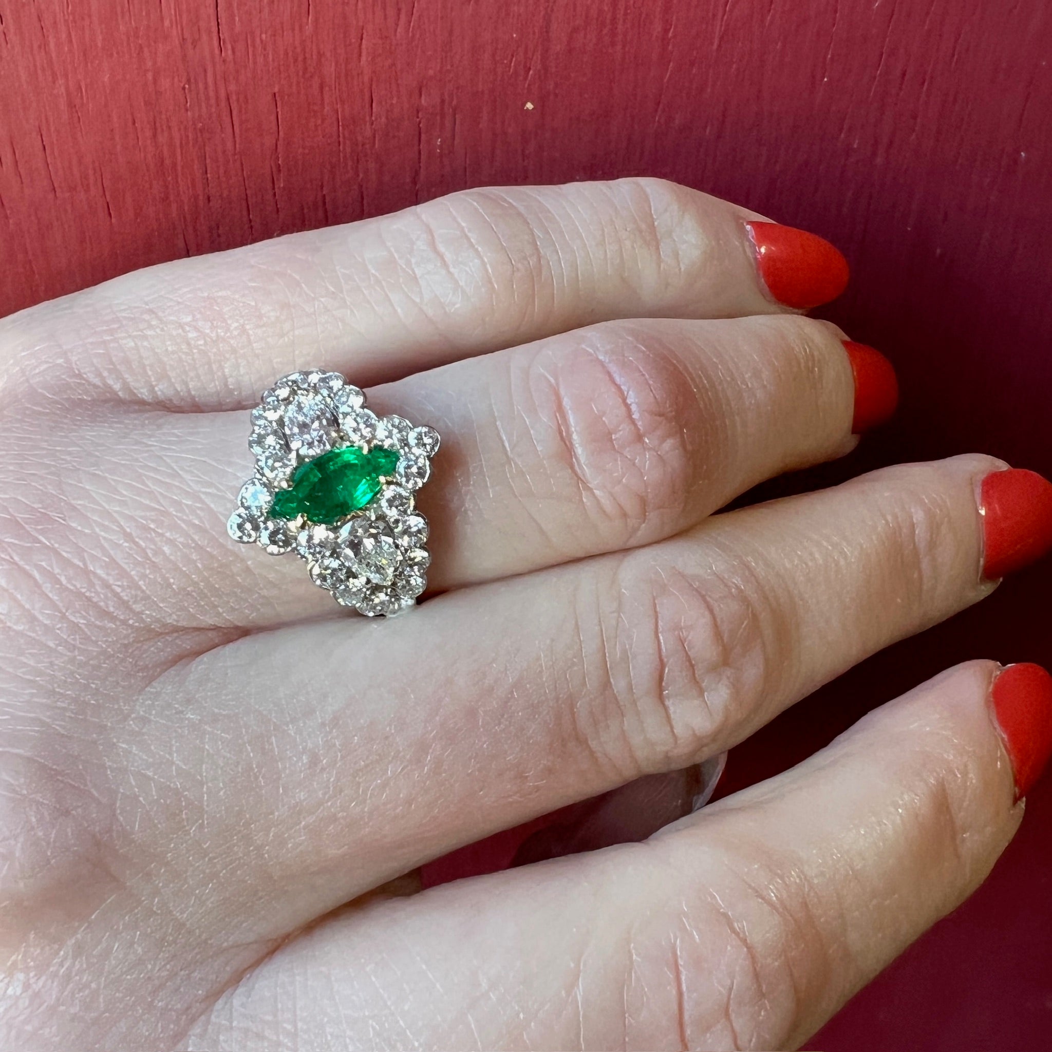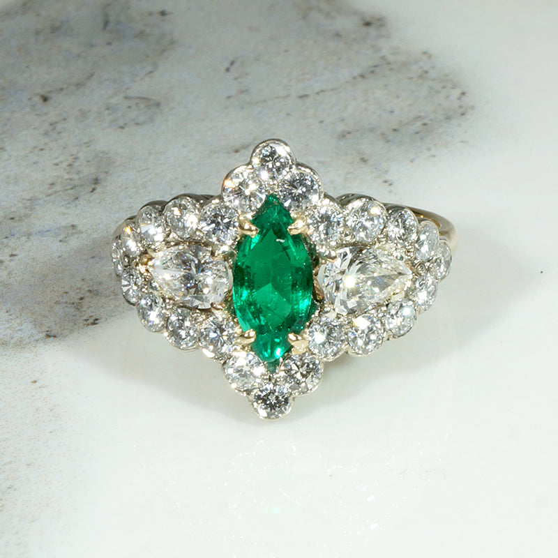 Awe Inspiring Marquise Emerald & Diamond Ring