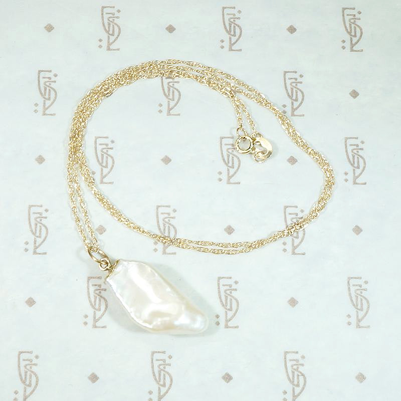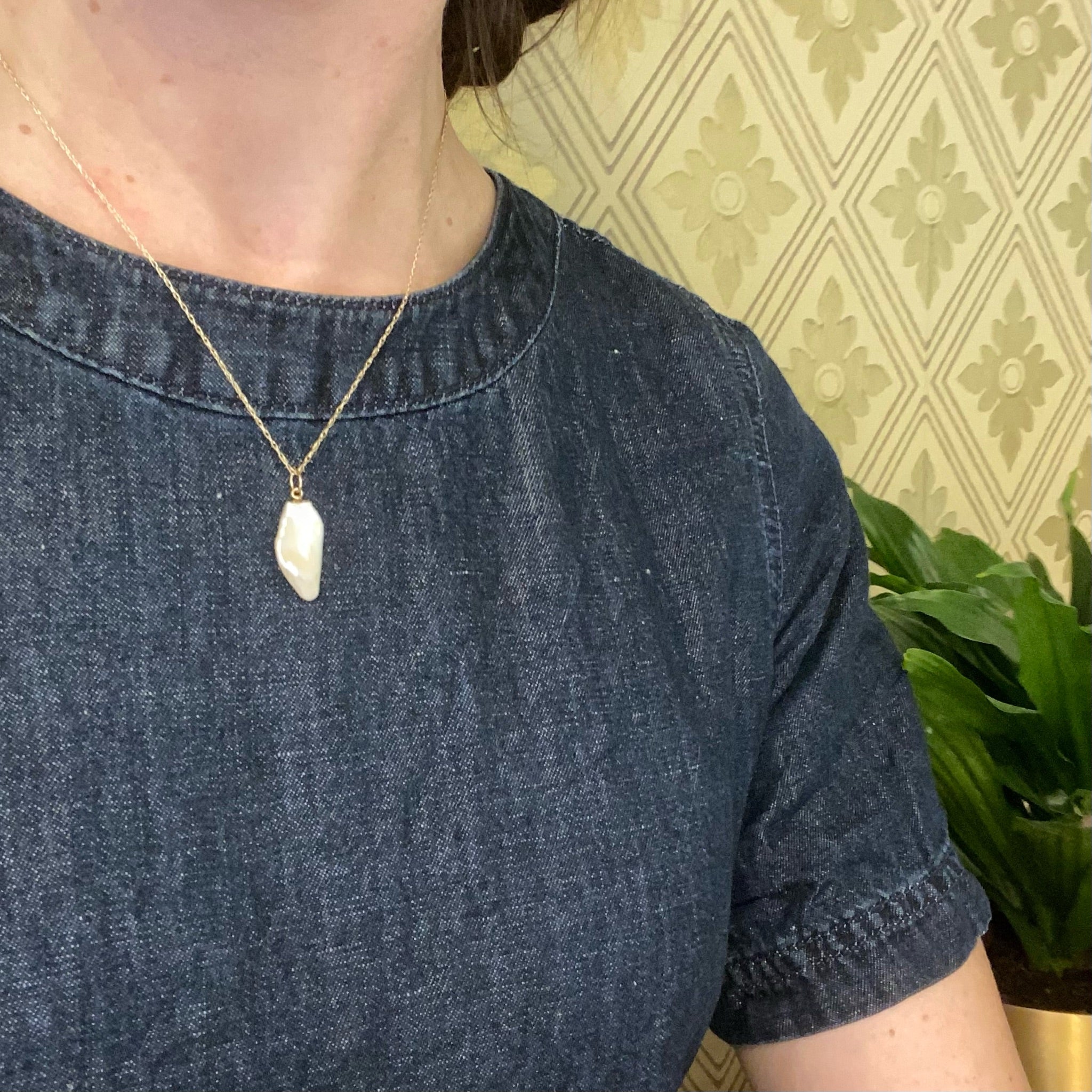 Pearls are classic wedding jewels, and this gorgeous baroque pearl pendant would make an interesting wedding necklace. The vintage white pearl with subtle iridescence is capped in 14k yellow gold and suspended on a ring bale. Elegant, with an organic, Bohemian flair. This necklace will look gorgeous worn with a formal gown, with a bikini or with anything in between.