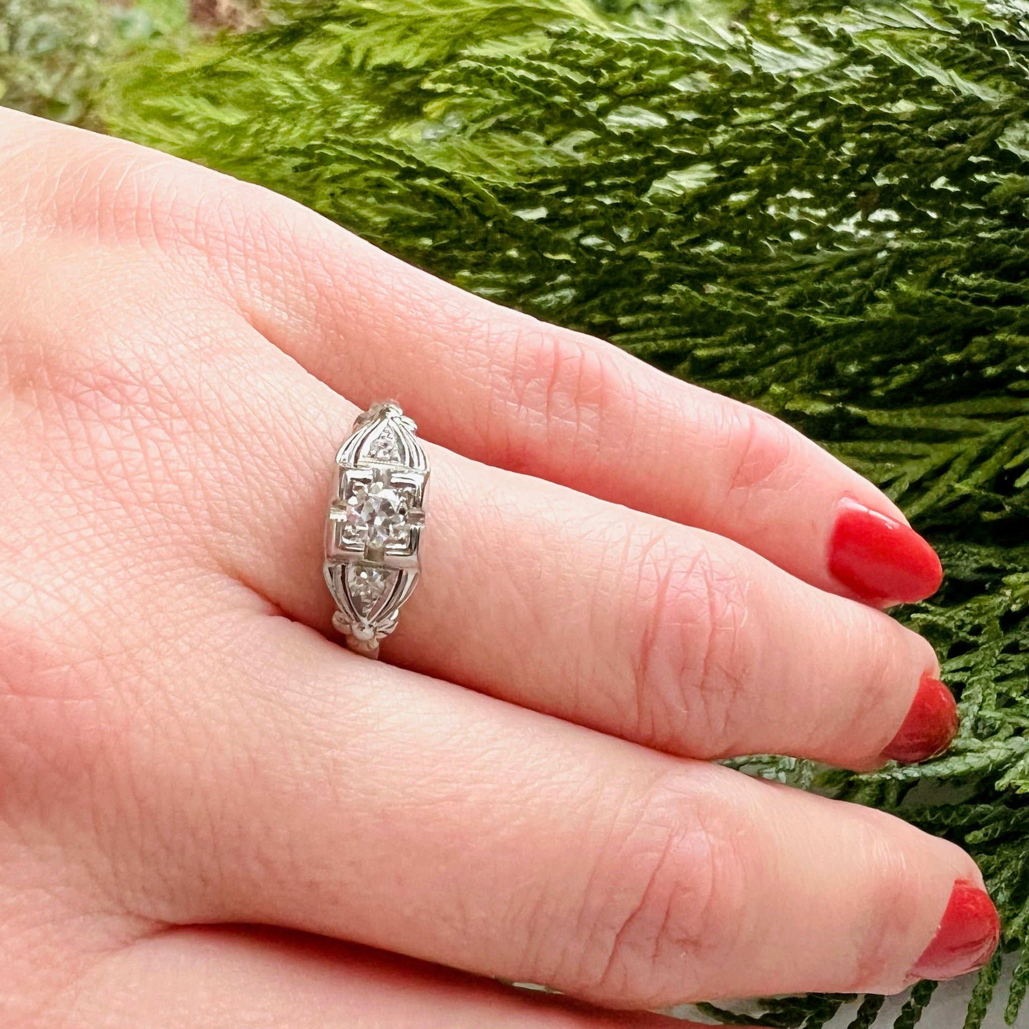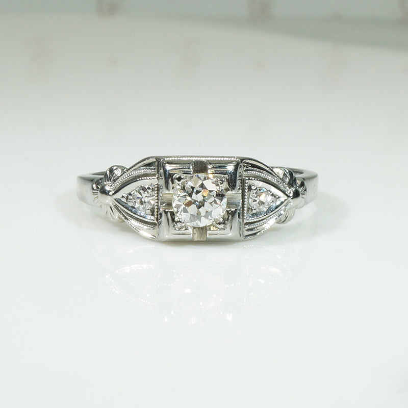 Beautiful 1930's White Gold Diamond Engagement Ring