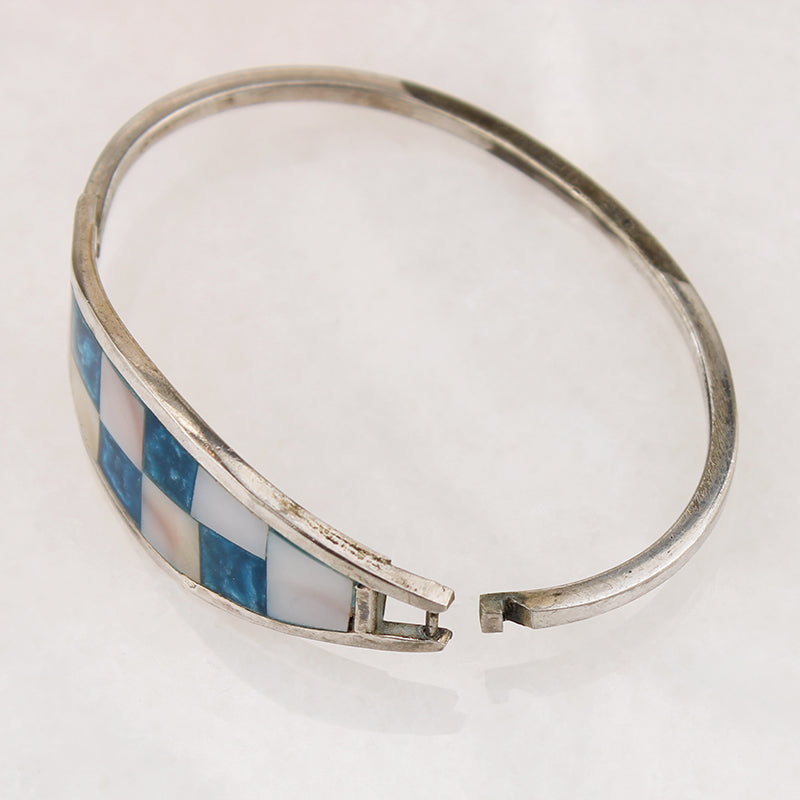 Beautiful Checkerboard Inlay Hinged Bracelet