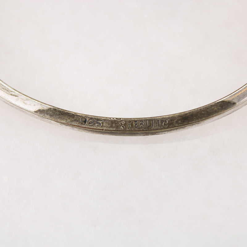 Details... The decorative top measures 2.16" by .77", the slim band is .10" wide, and the hinged opening is 1.93" across. The inner dimensions are roughly 2.32" wide and 1.7" deep, with an approximate inner circumference of 6.5". In Very Good Vintage Condition, with visible wear to the plating. You should always expect some wear on vintage and antique jewels; we consider it a part of their charm.