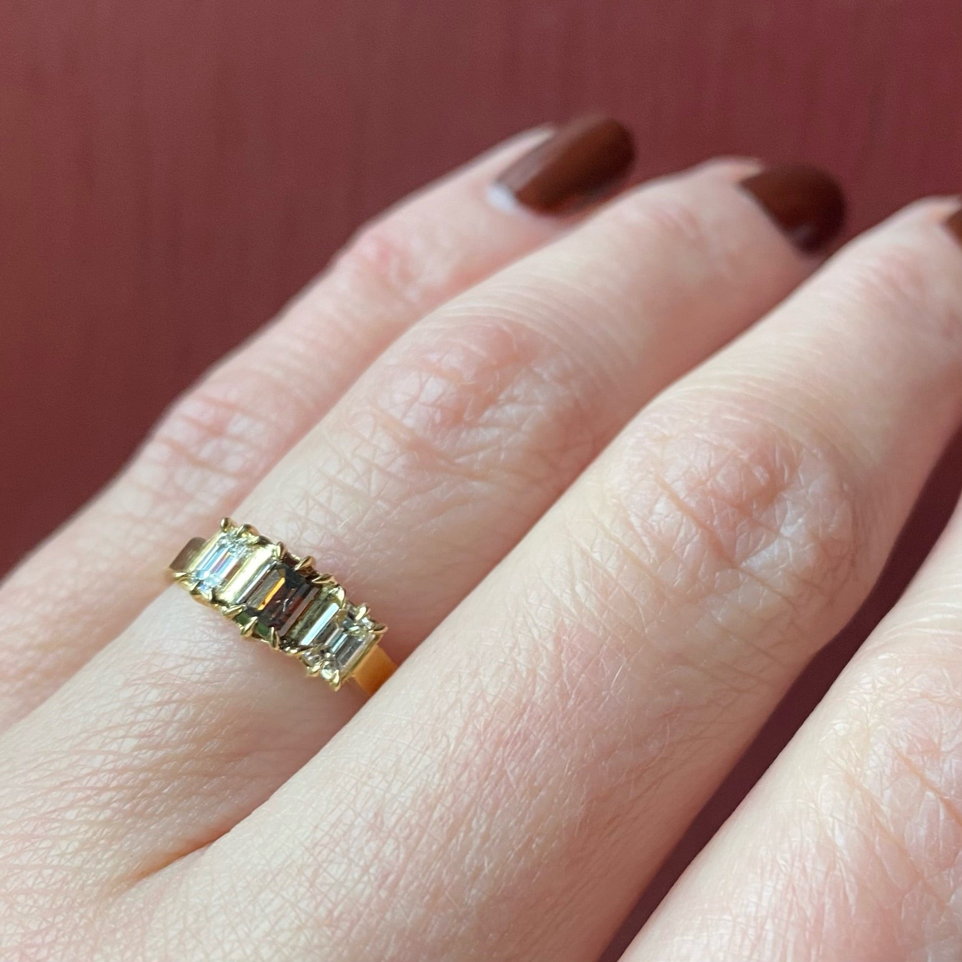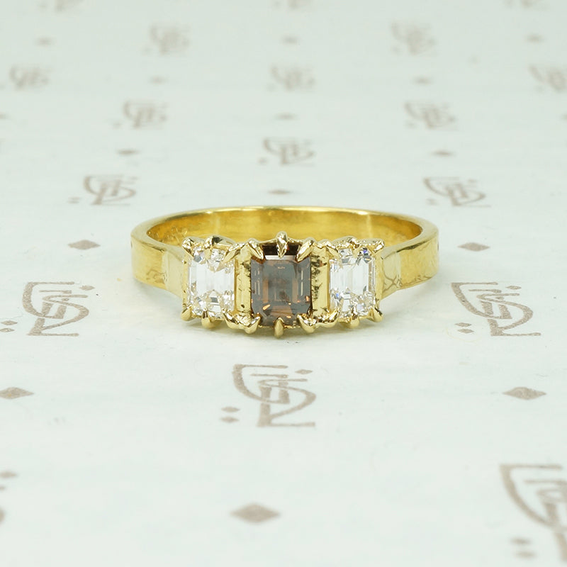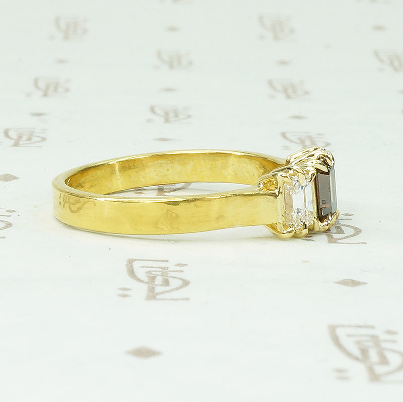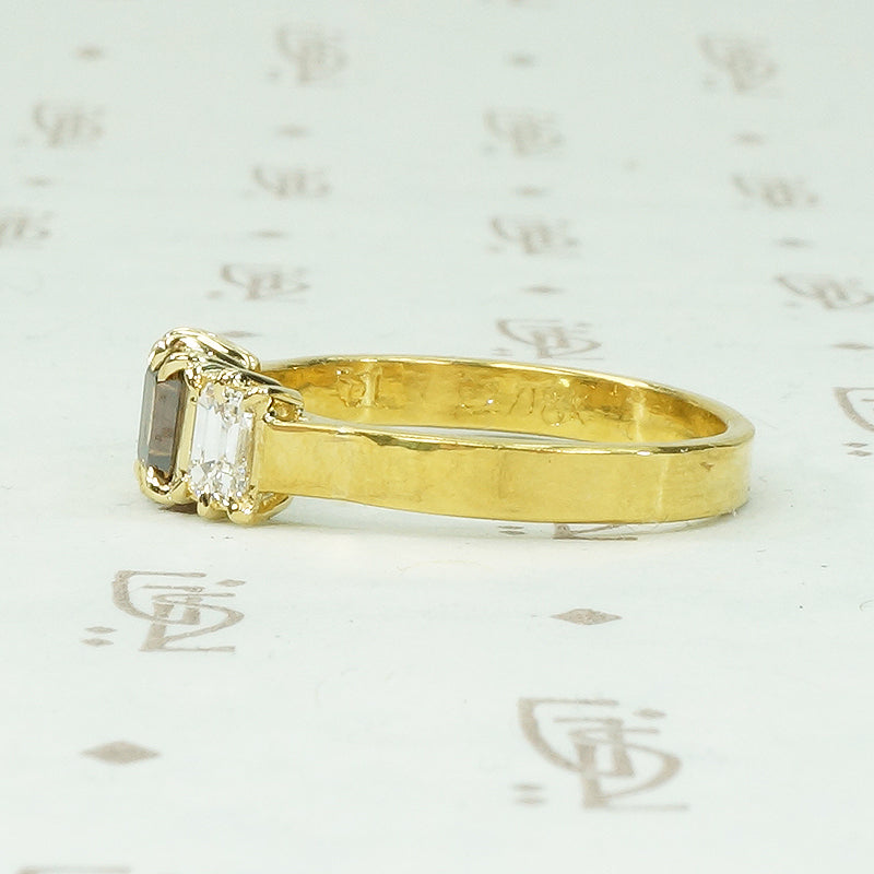 Bespoke 22k Cognac Emerald Cut Diamond Ring