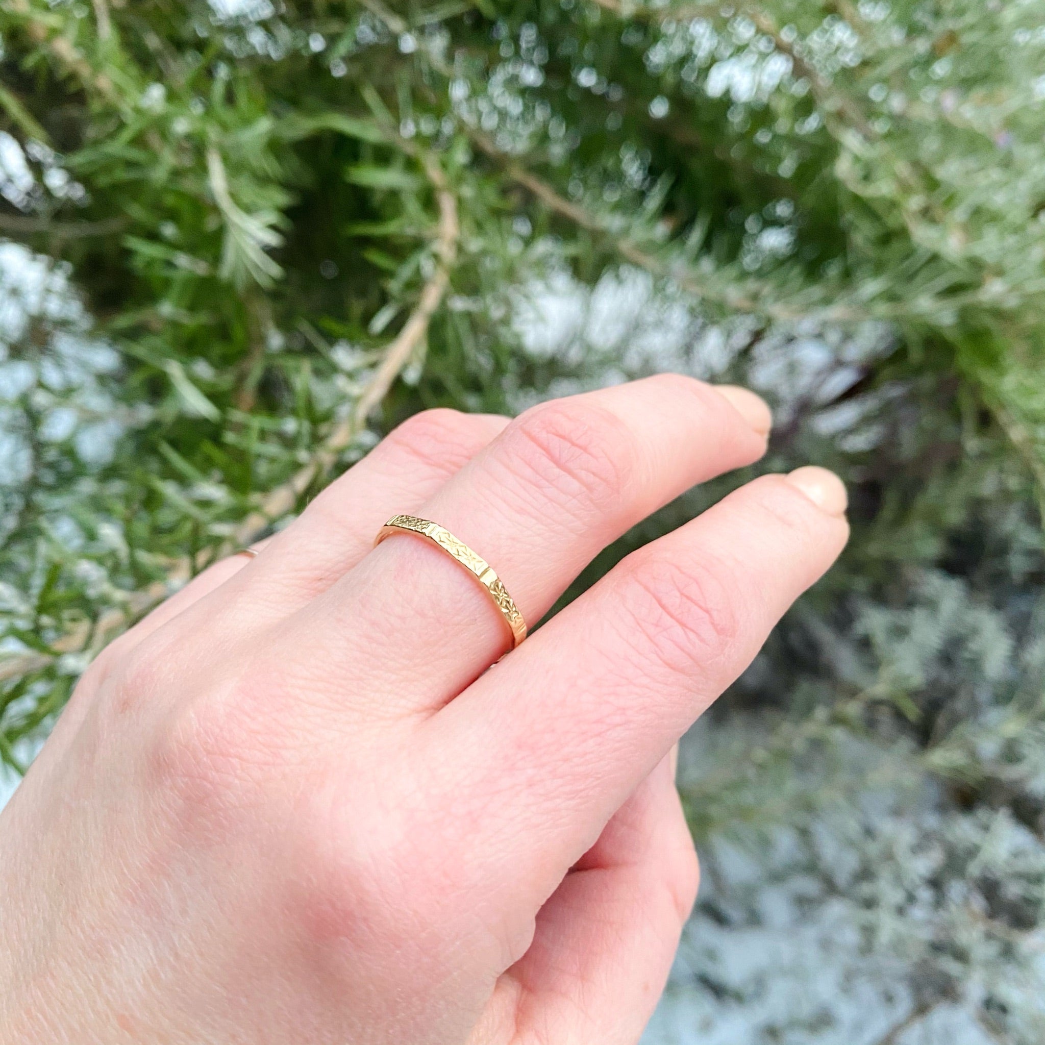 Details.....Size 10. This ring cannot be sized. It measures 2mm wide.
