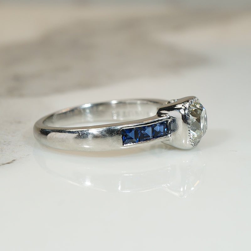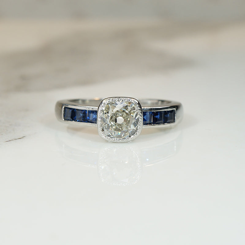 Bezel Set OMC Diamond and Sapphire Engagement Ring