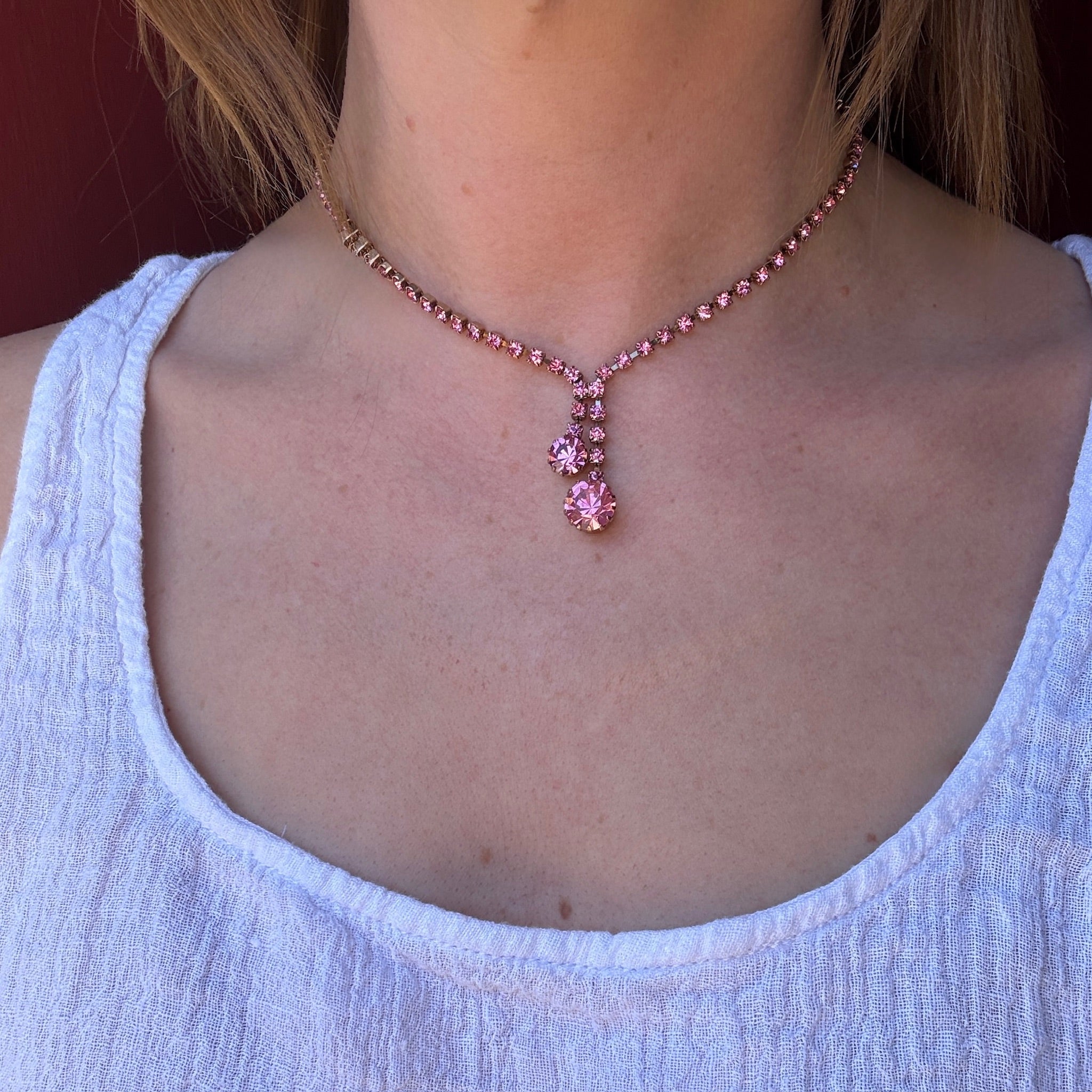 Bright Pink Rhinestone Negligee Necklace