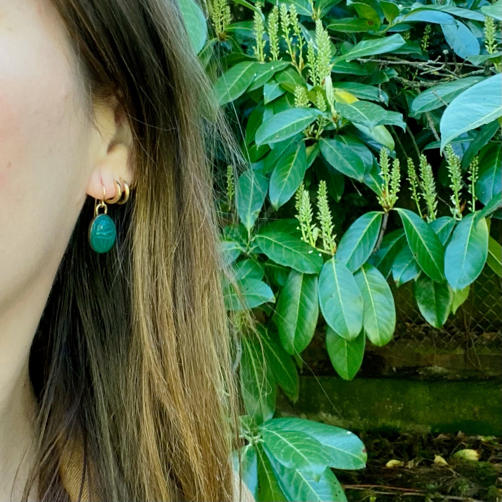 Details.....The earrings measure 1" long and the scarabs measure 10.7mm by 14.7mm. In Very Good Vintage Condition. You should always expect some wear on vintage and antique pieces, we consider it part of the charm