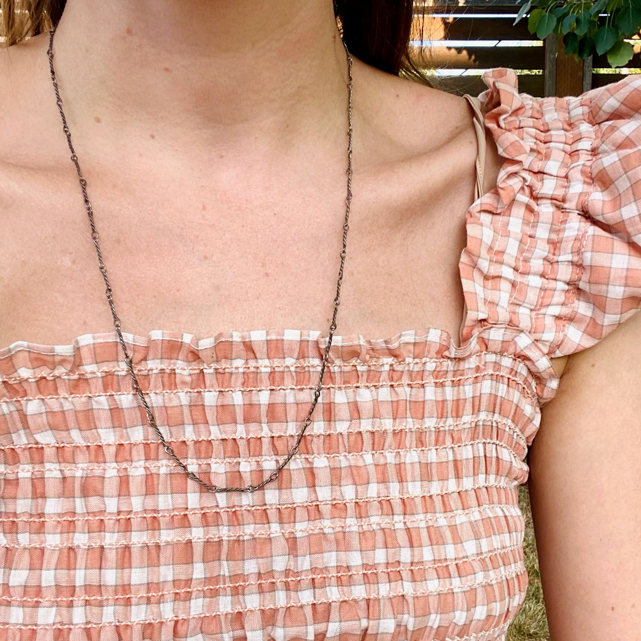 Details.....The chain is 24" long. Each link measures 12.7mm long and 1mm wide. In Very Good Vintage Condition. You should always expect some wear on vintage and antique pieces, we consider it part of the charm.