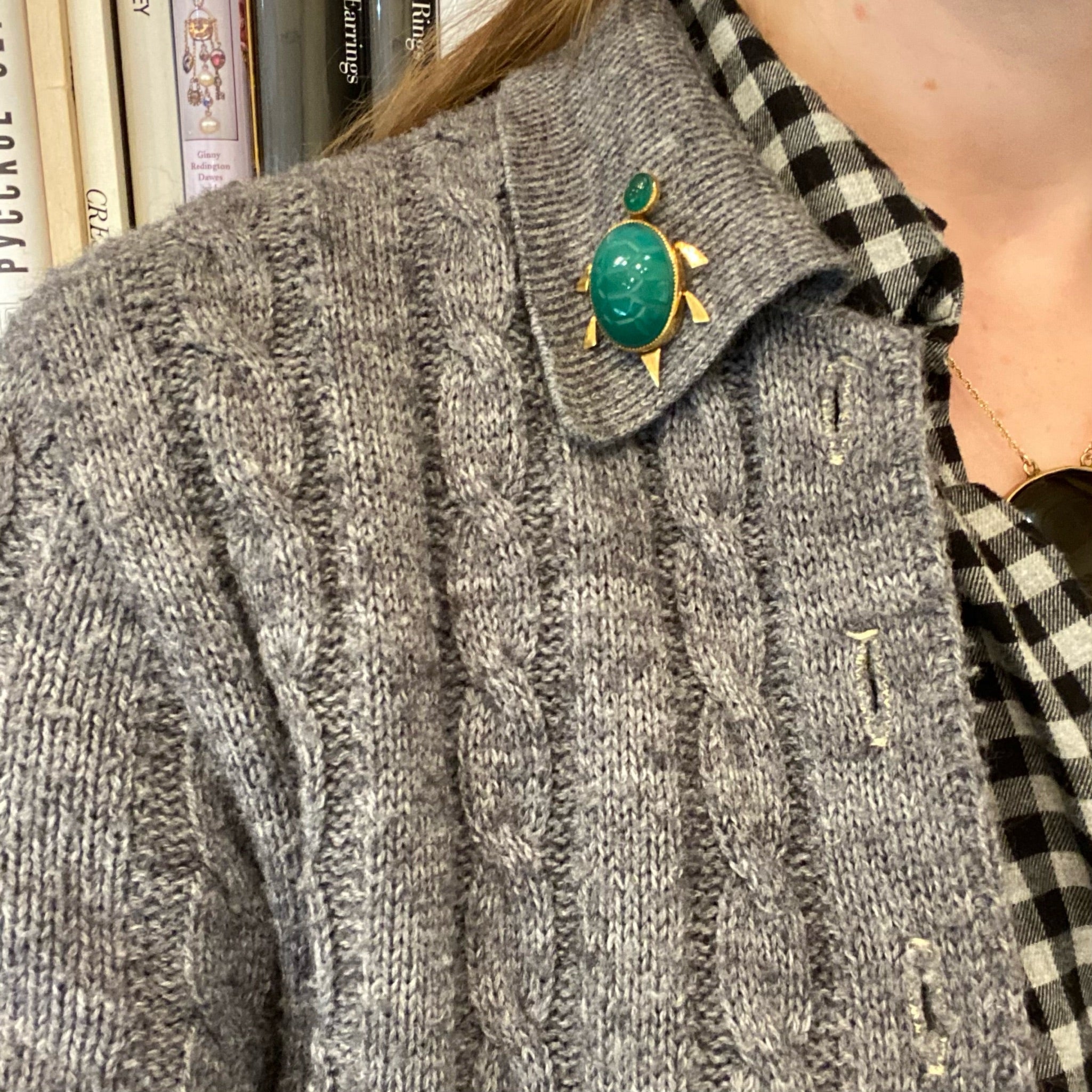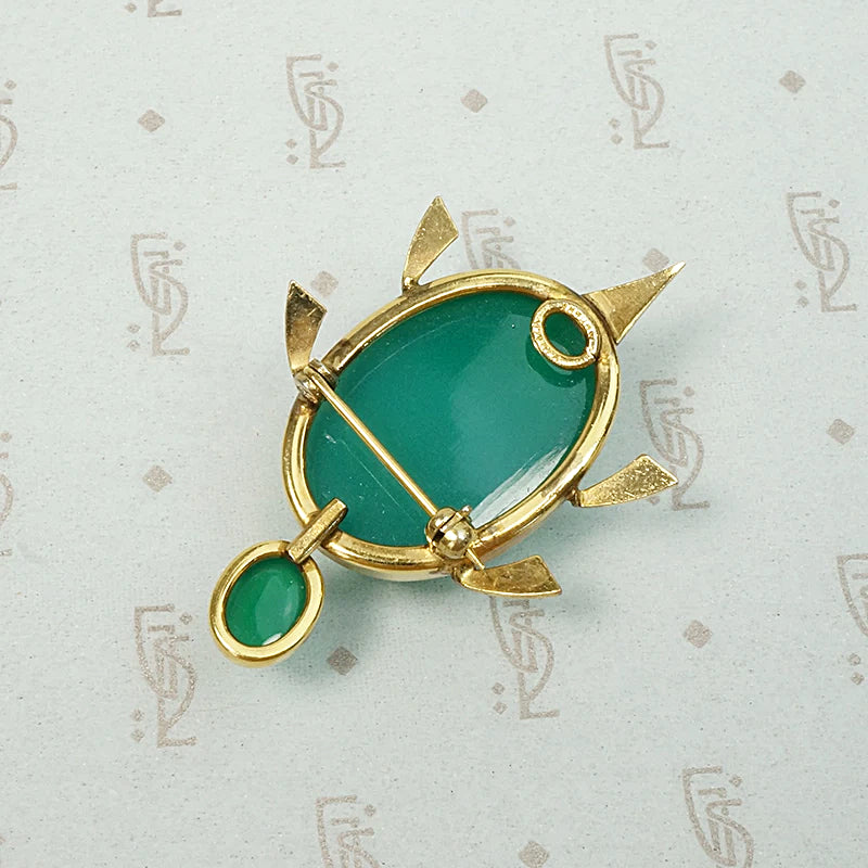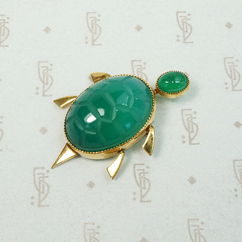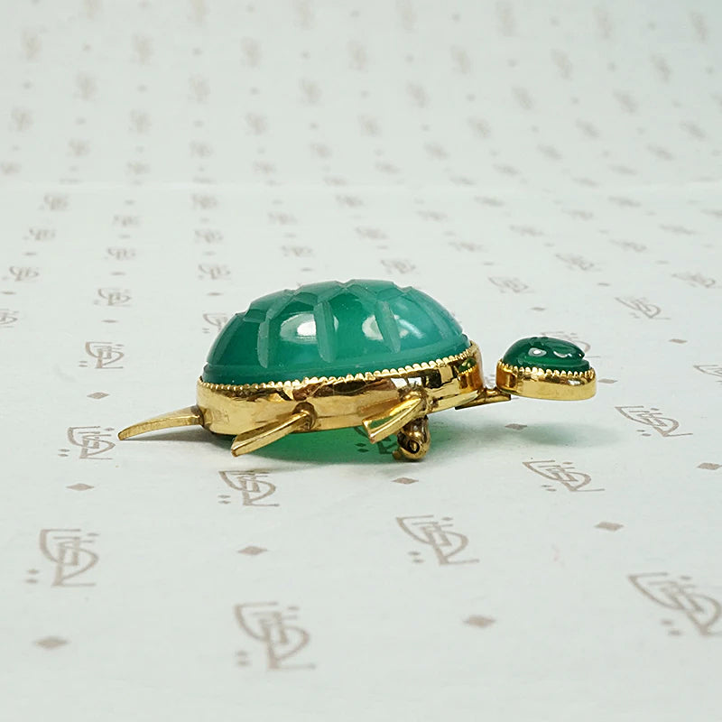Charming Chrysoprase Turtle Pin with Scarab Head