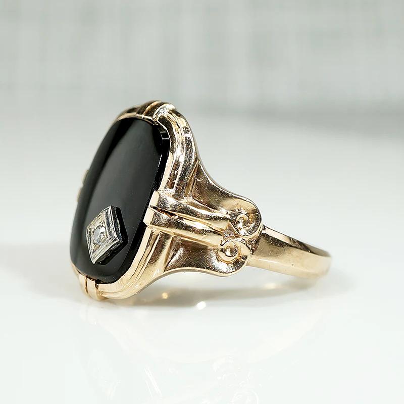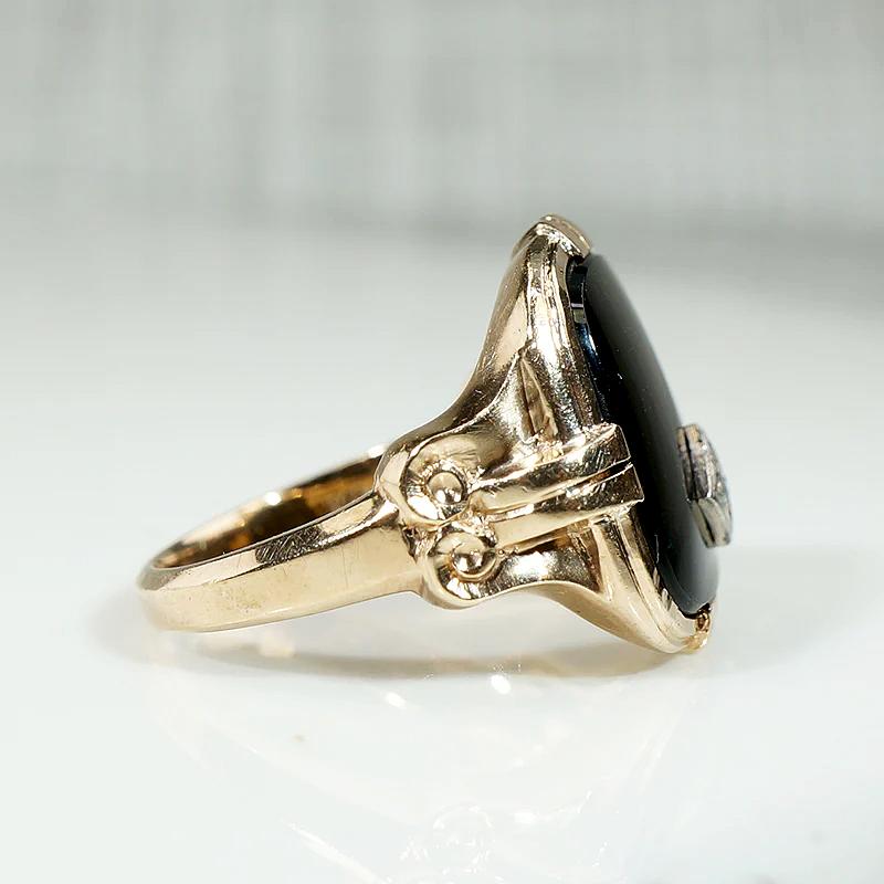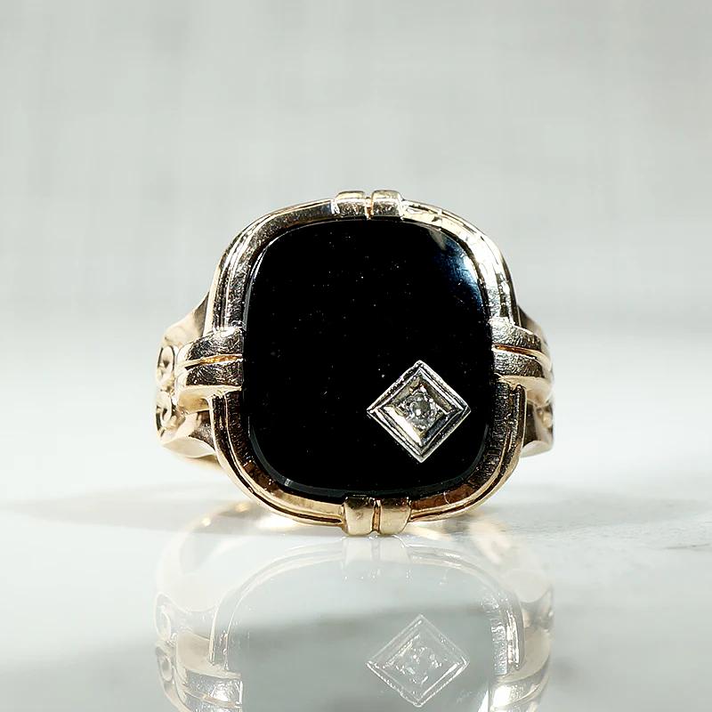 Charming Onyx Ring with Jaunty Diamond