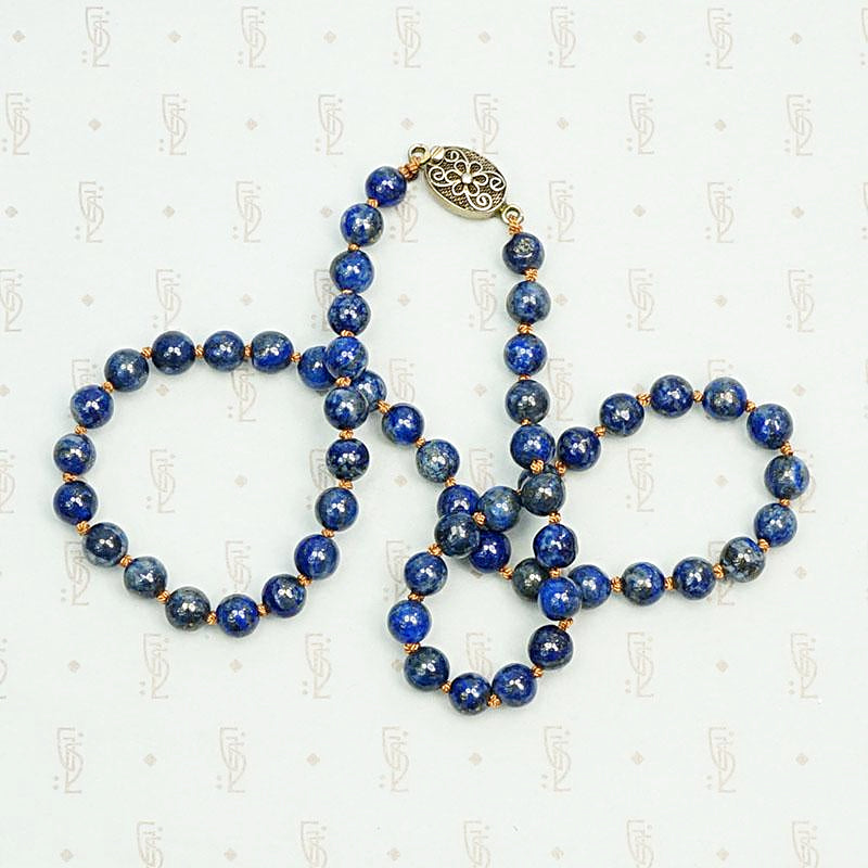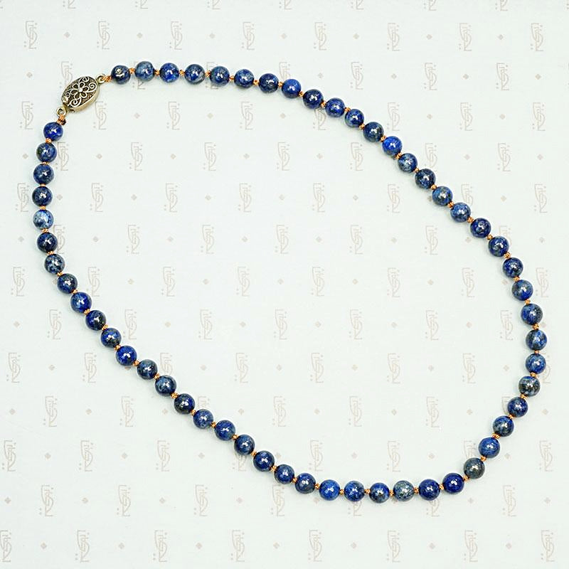 Chinese Sodalite Beads on Gold Silk with Filigree Clasp