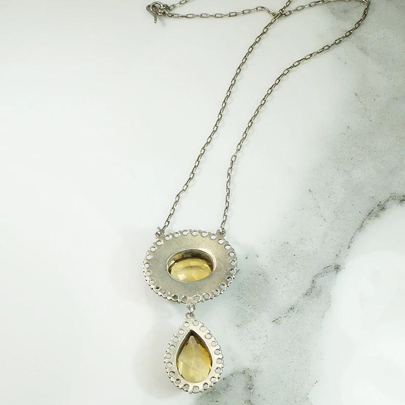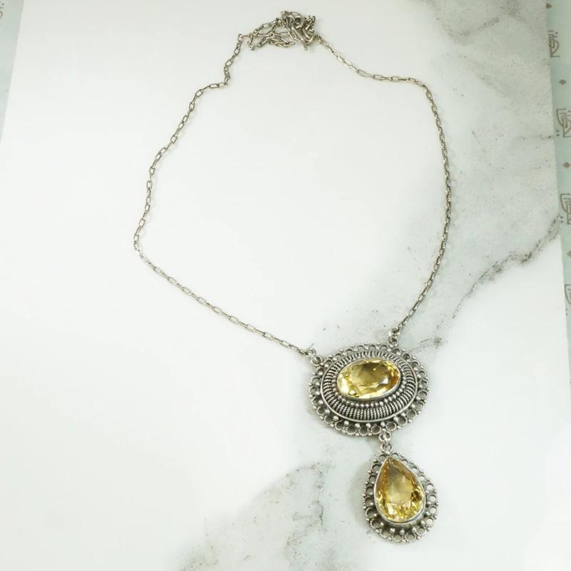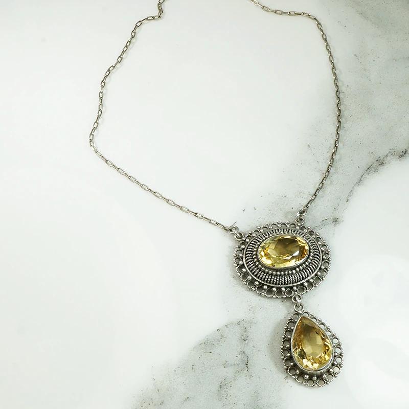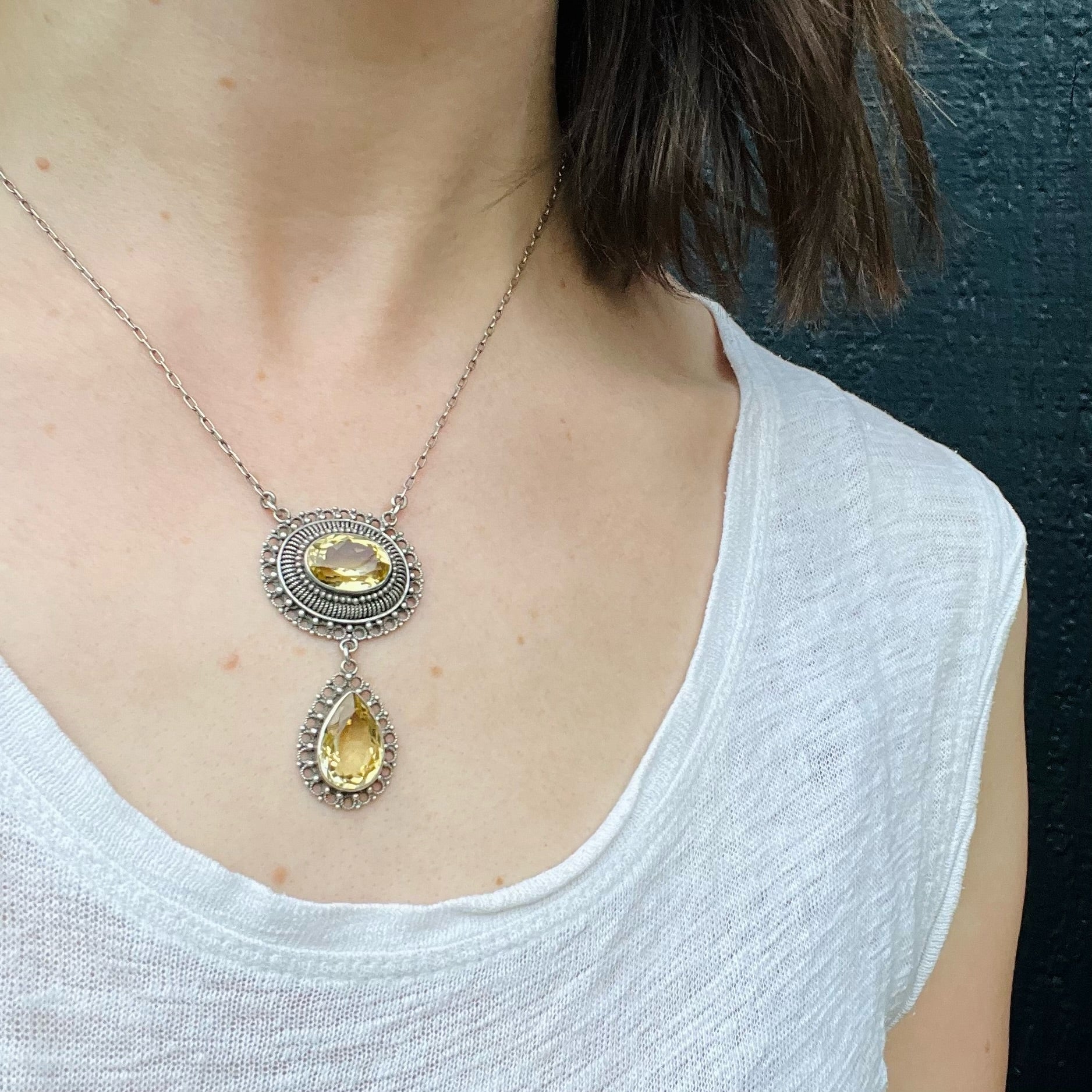 Elaborate Silver Filigree & Citrine Drop Necklace
