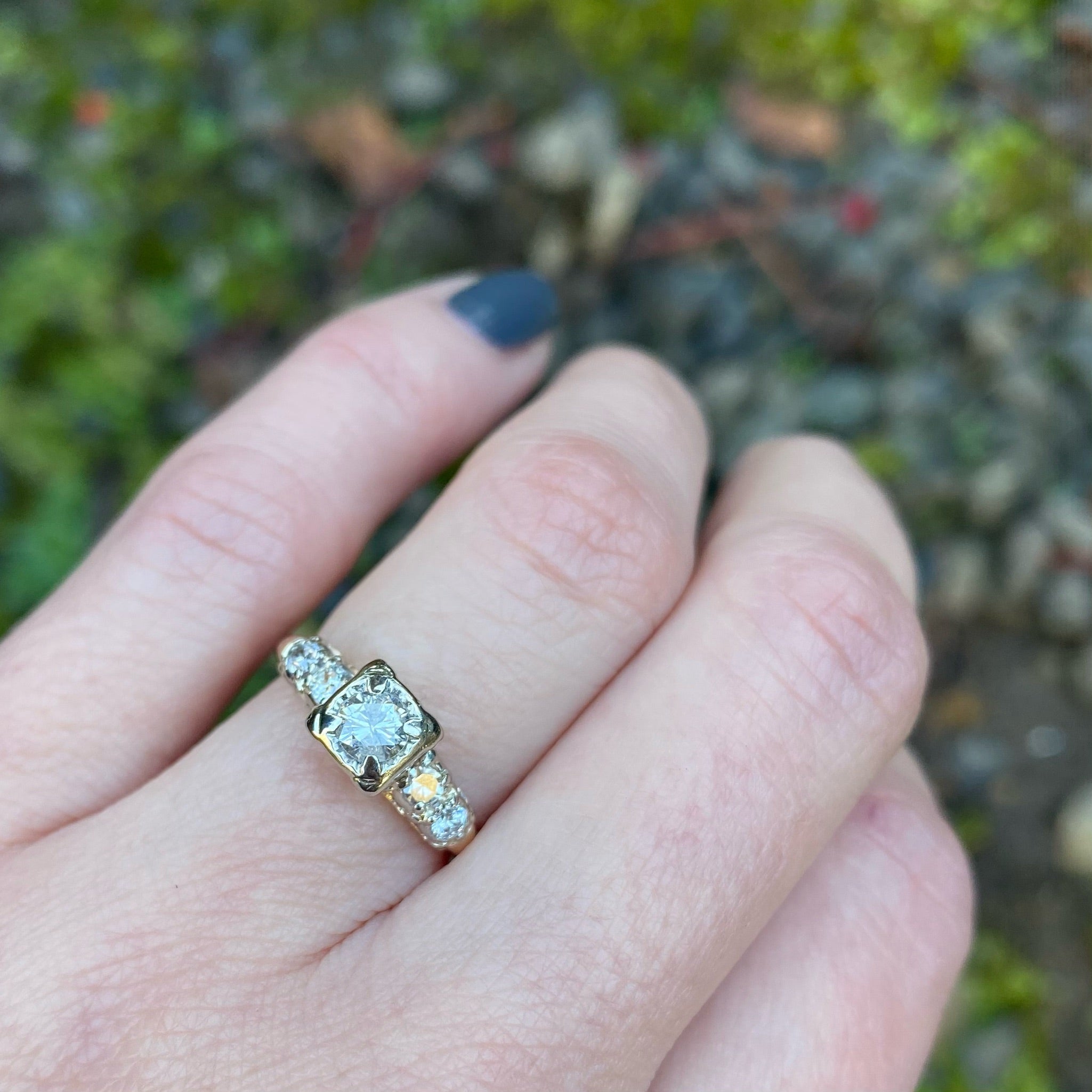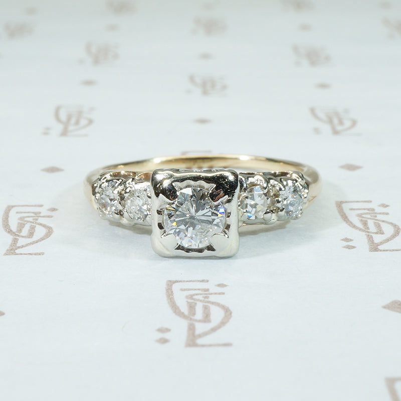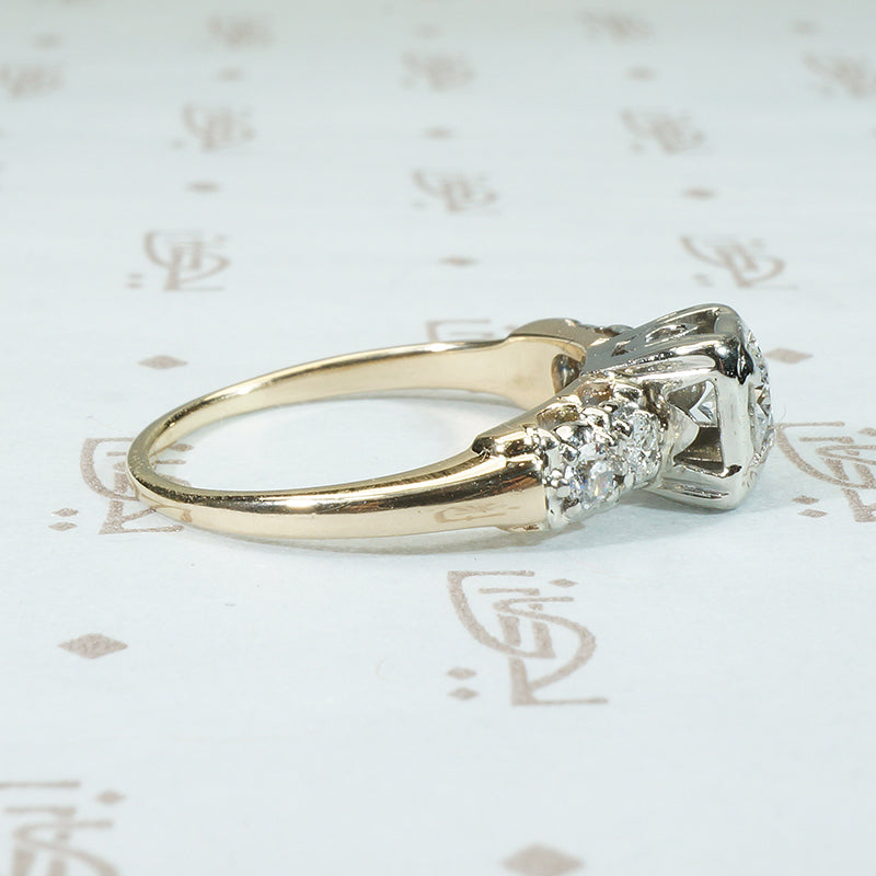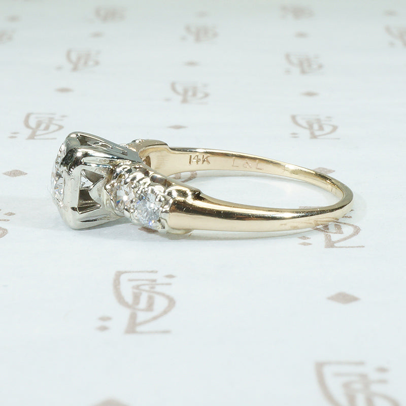 Classic 1940's 2 tone gold Diamond Engagement Ring