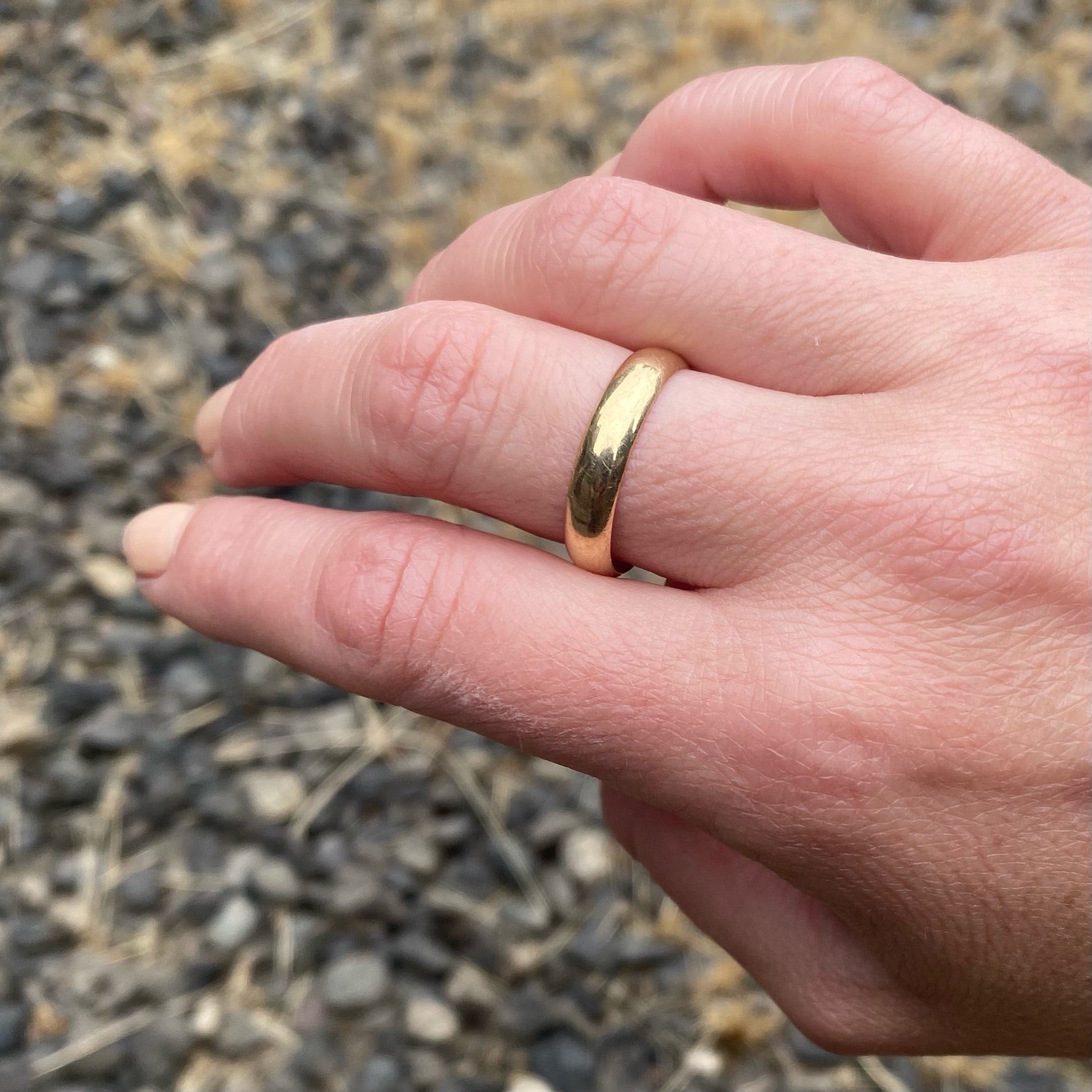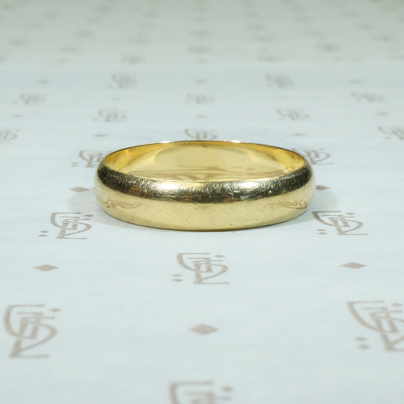 The perfect shade of old gold, this 14k wedding band has just the right amount of curve to the front. A comfortable & classic vintage wedding band. Circa 1960's.