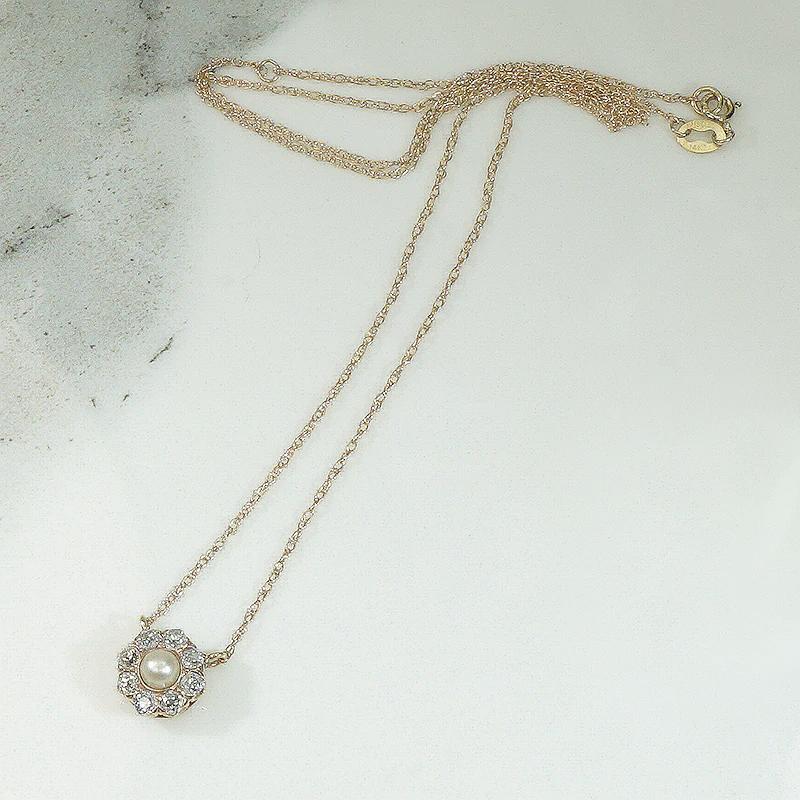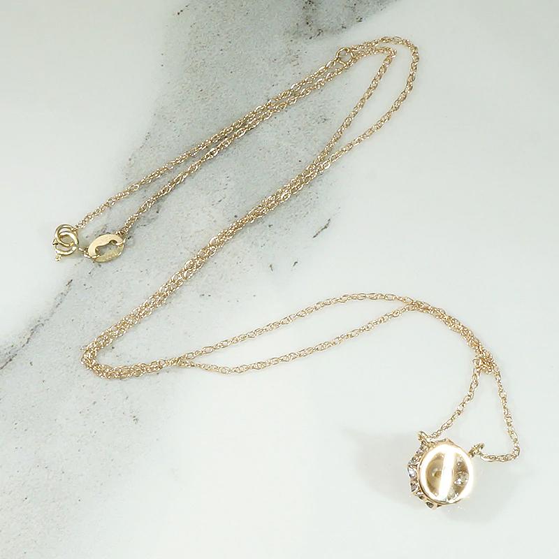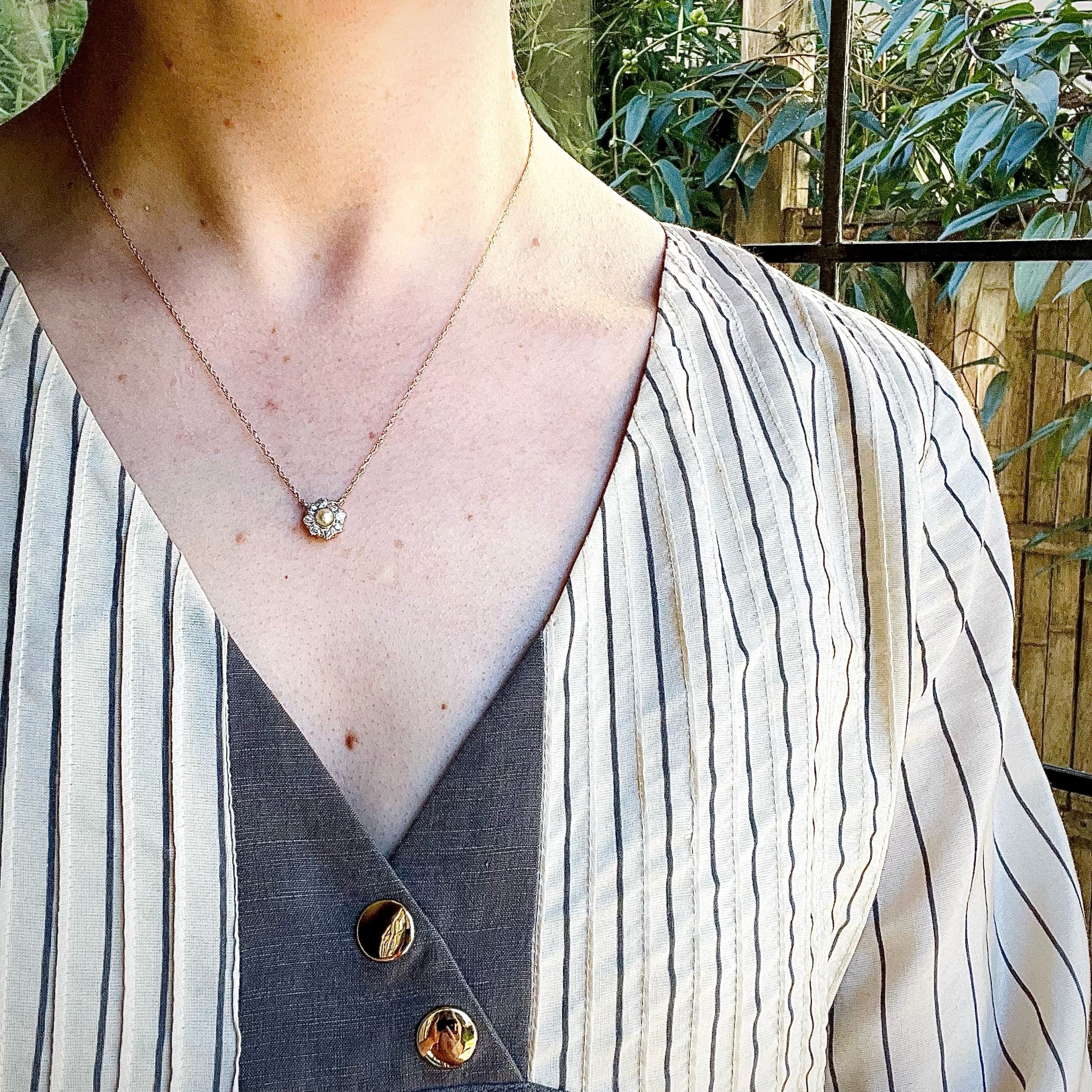 Details.....The necklace is 18" long. The pendant measures 9.8mm in diameter and the pearl is 3.7mm. In Very Good Antique Condition. You should always expect some wear on your vintage and antique jewels, we consider it part of their charm.