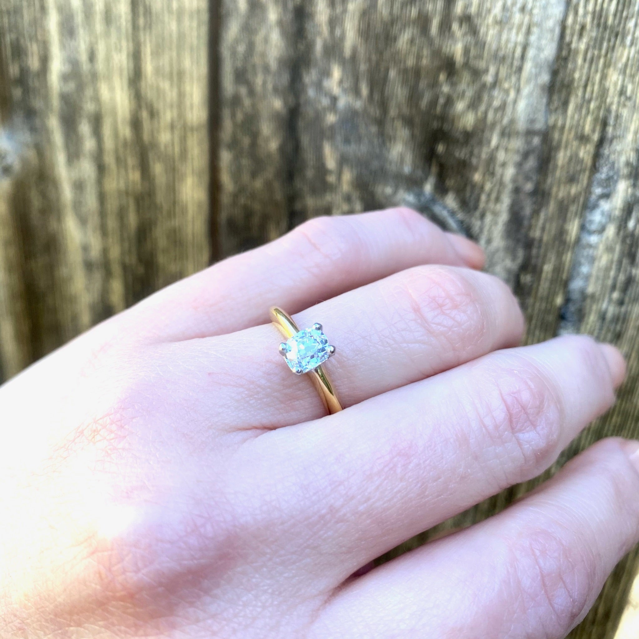 Diamond details.....The diamond is a 0.69 carat old mine cut with SI2 clarity and J/K color.