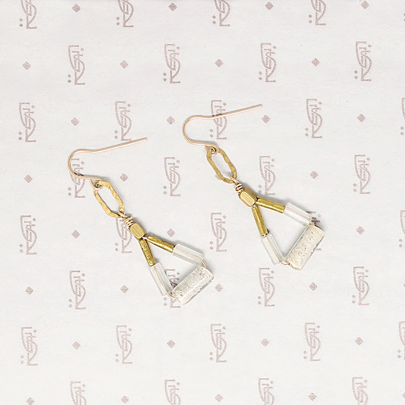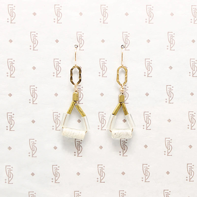 Cloudy Day Glass & Brass Bead Earrings