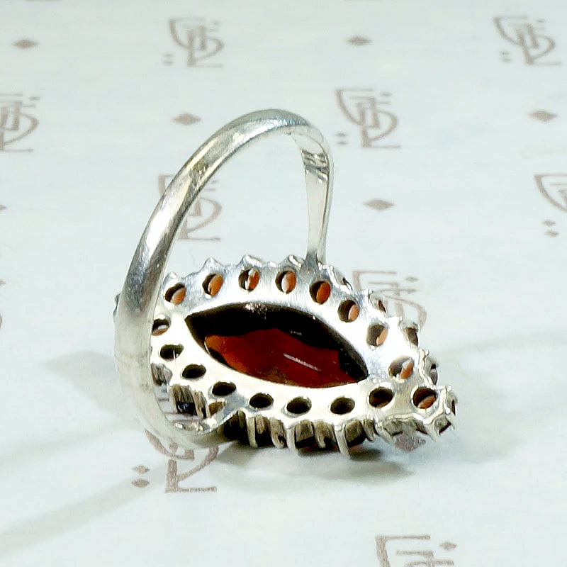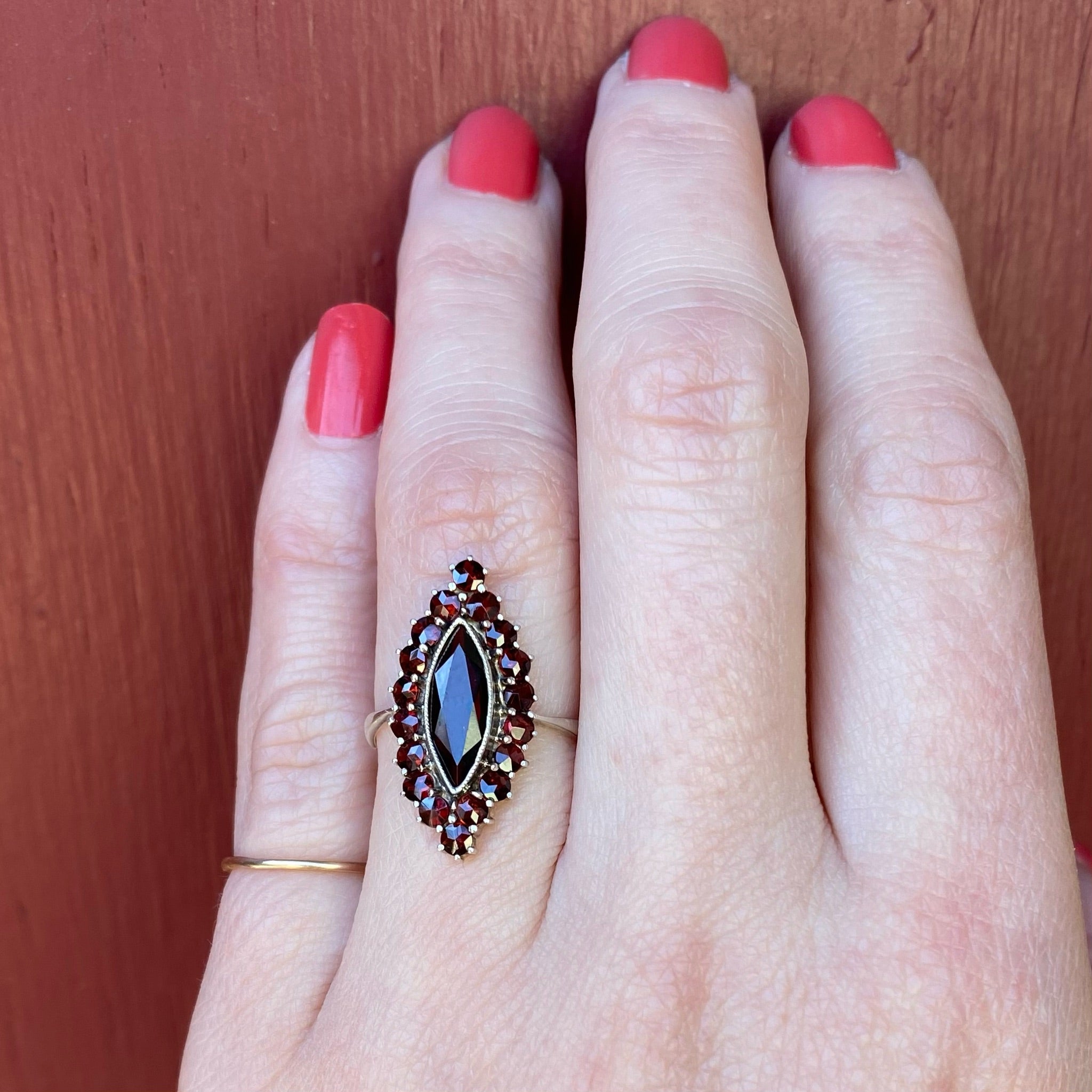 Czech Marquis Garnet with Rose Cut Halo Ring