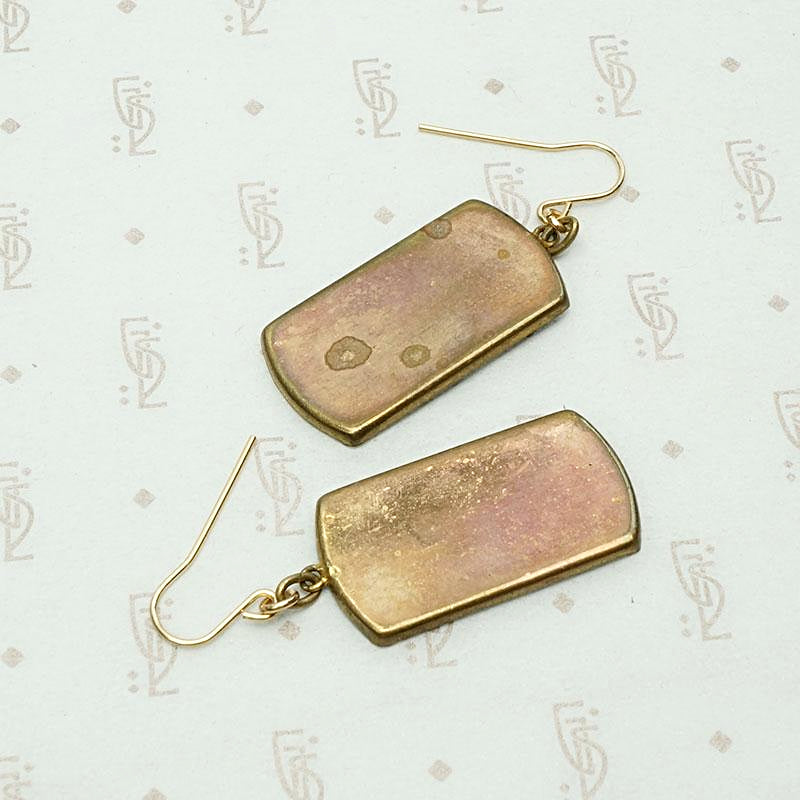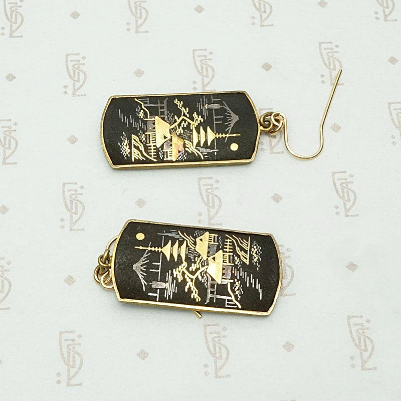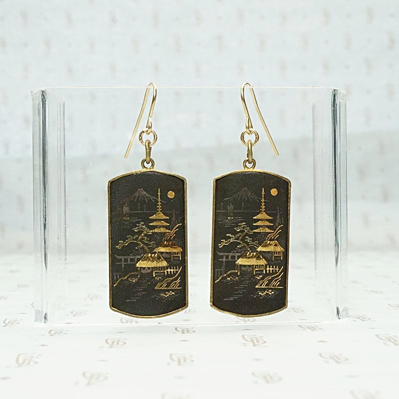 Damascene Japanese Village Panel Earrings