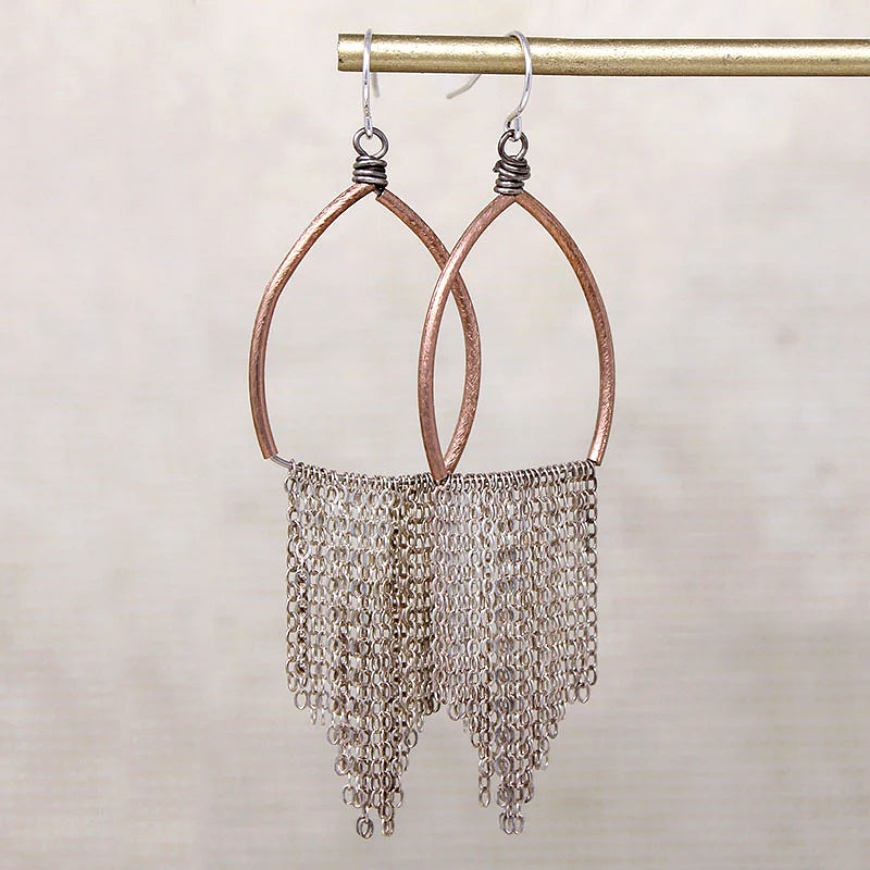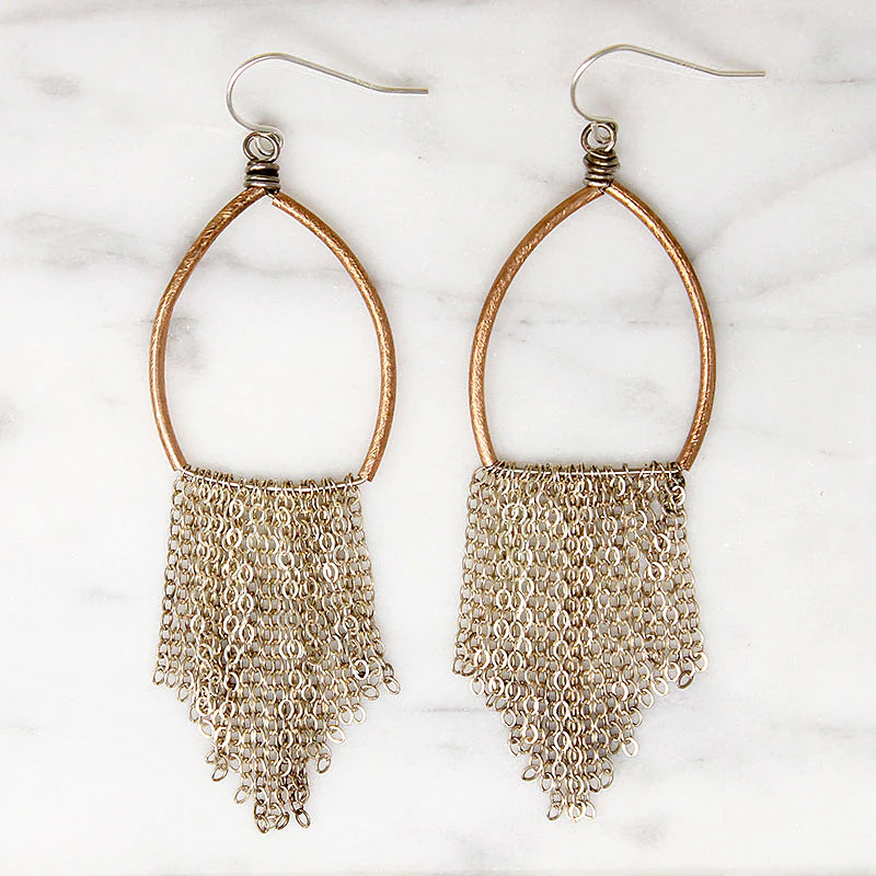 Dancing Queen Brass & Silver Fringe Earrings by Brin