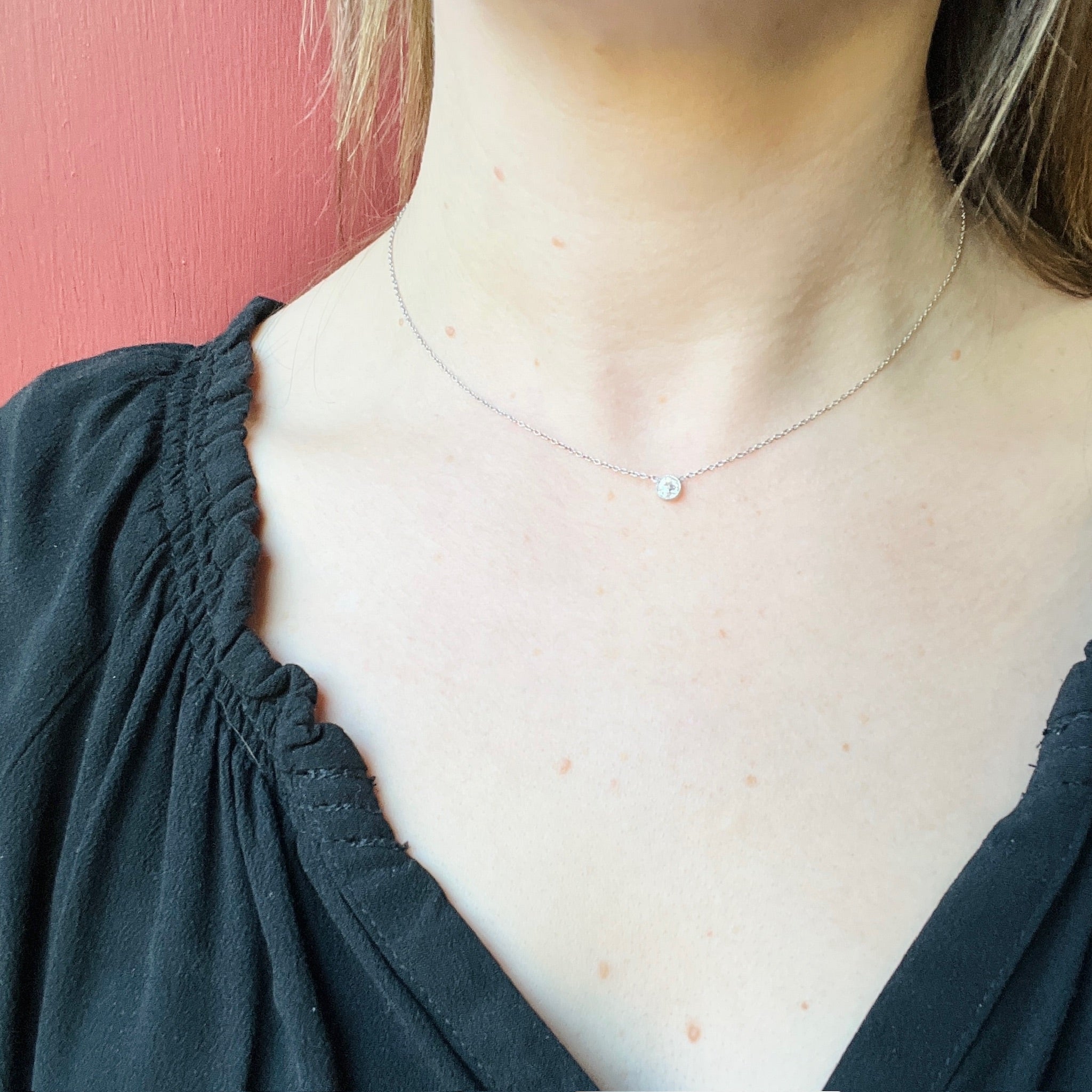 Details.....The chain is 16" long, and the pendant bezel measures 5.4mm in diameter. In Very Good Antique Condition. You should always expect some wear on your vintage and antique jewels; we consider it part of their charm.