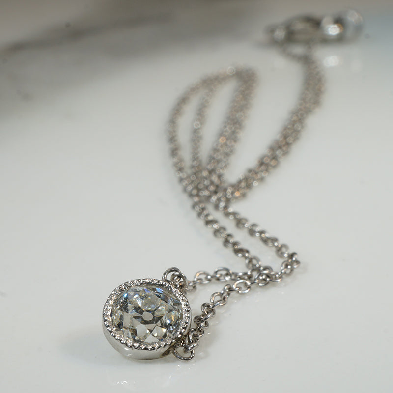 Dazzling 1/2 Carat Old Mine Diamond in Platinum Pendant