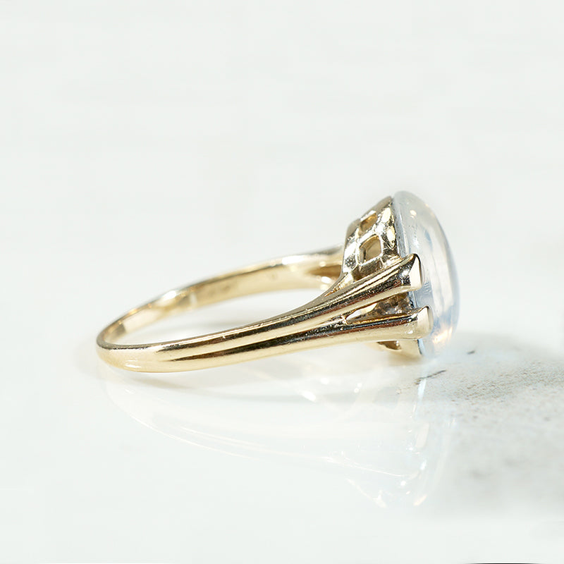 Lucent Moonstone in Gold Art Deco Ring