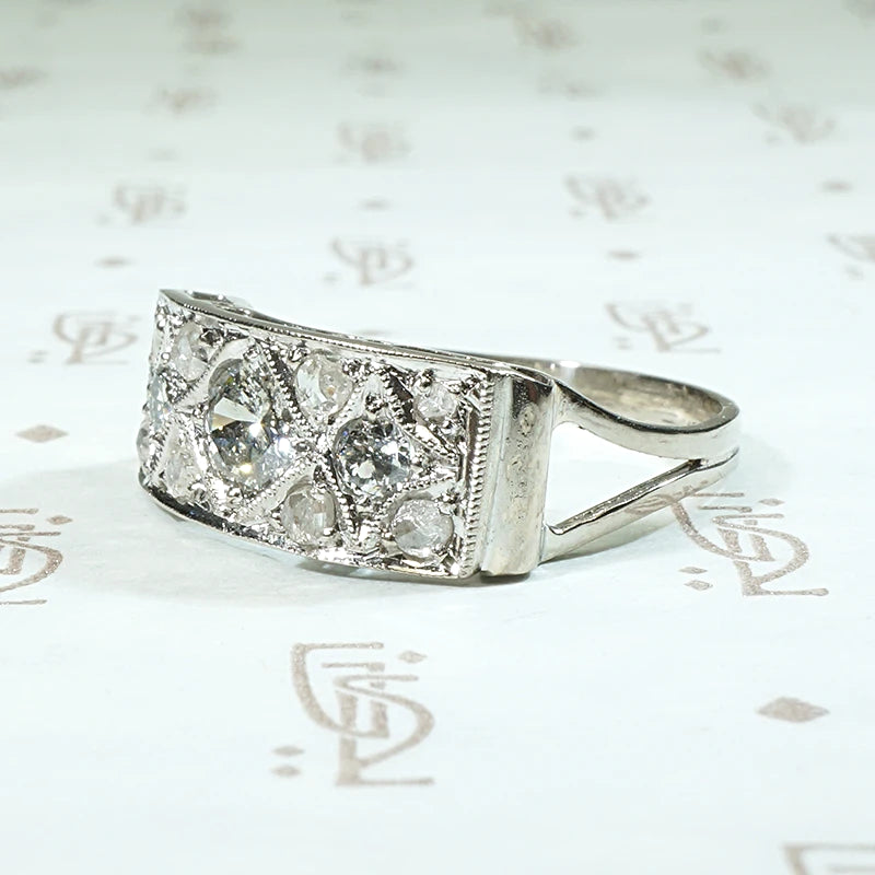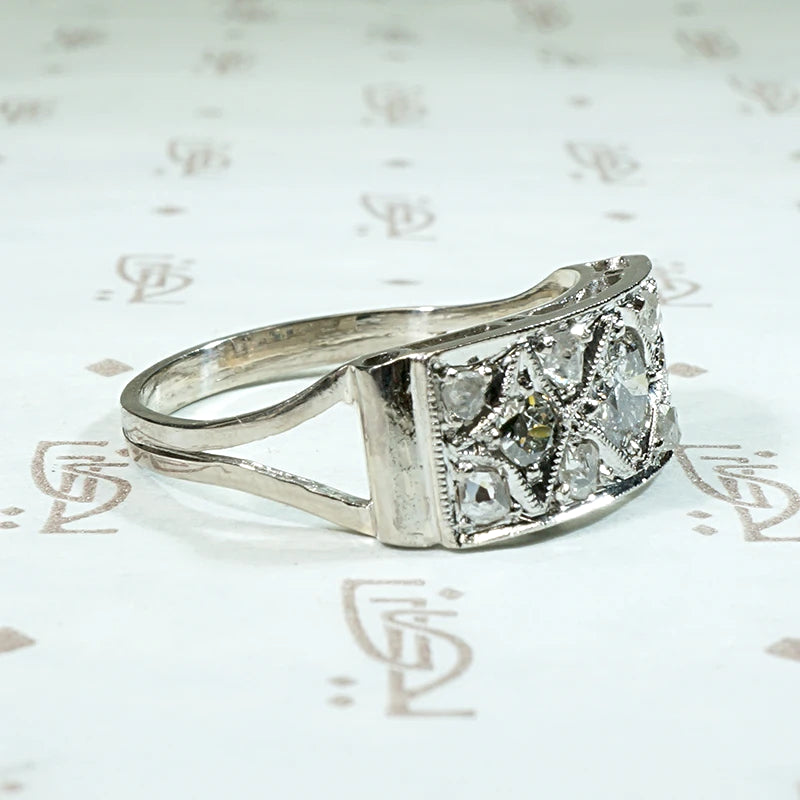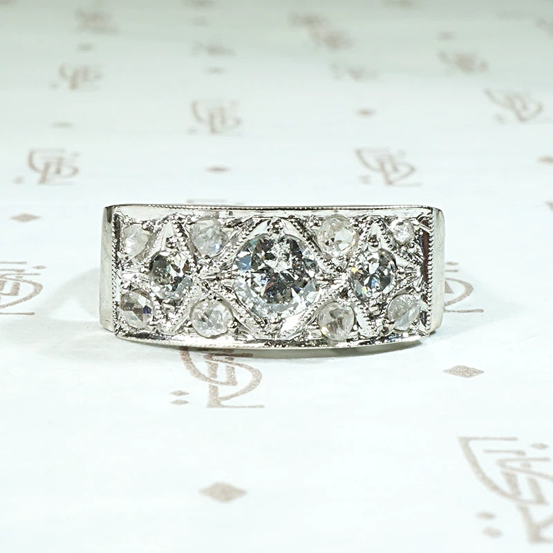 Deco Rose & Old Mine Cut Diamond Panel Ring