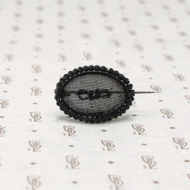 This fascinating little brooch dates to the turn of the 18th Century. An example of Silesian wire work, a jewelry making style closely related to Berlin Iron jewelry. The intricate designs were fashioned from base metal then finished in black lacquer. Delicate, lightweight and historically interesting. Circa 1800-1820.