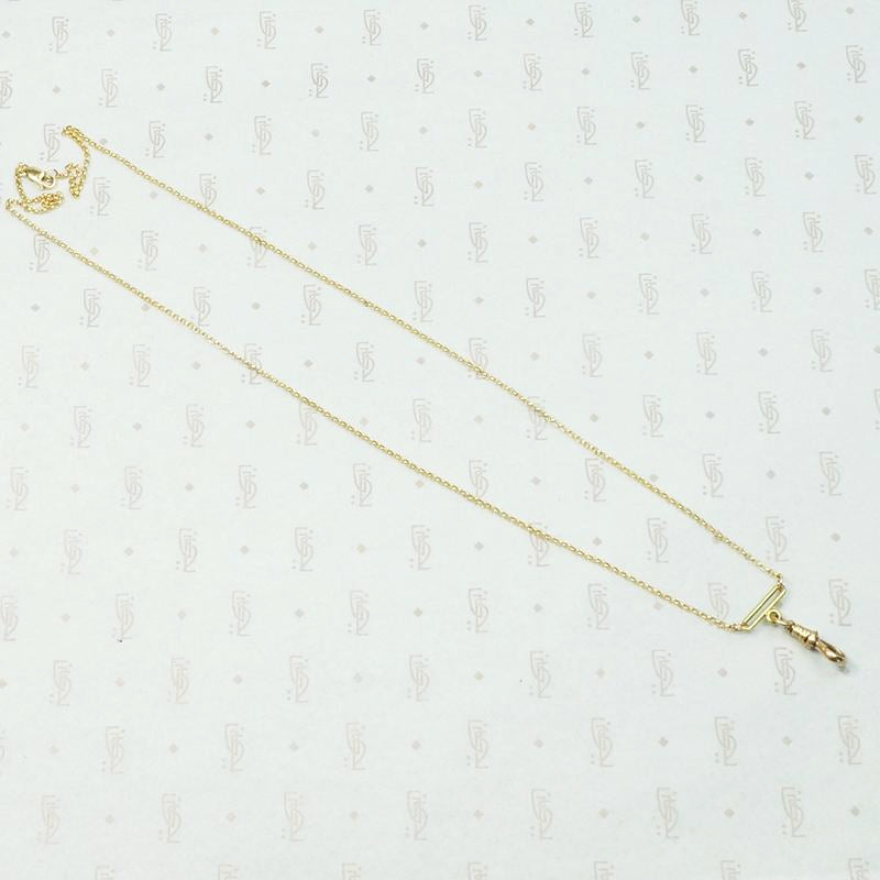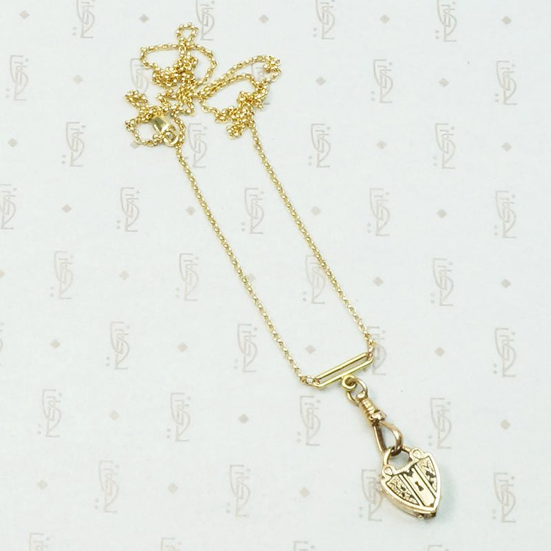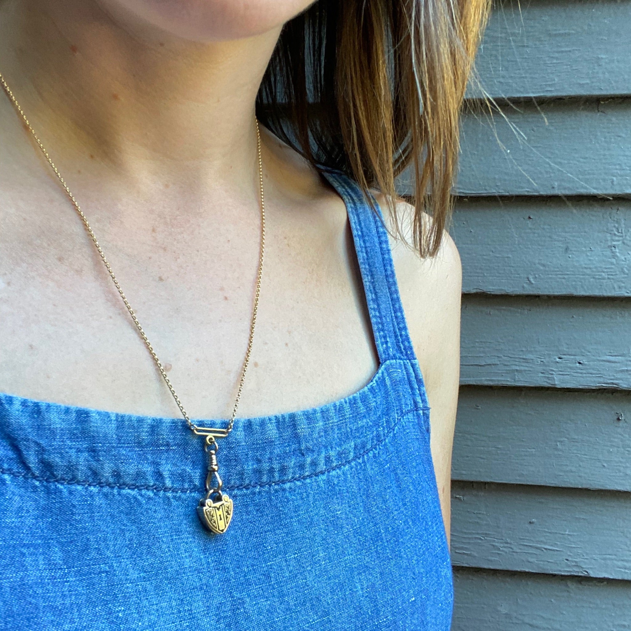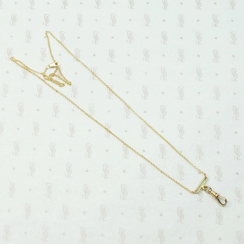 Fine 14k recycled gold rolo chain suspends a delicate Victorian 10k gold hook and bar. The watch hook is perfect to hang your favorite dainty fobs and charms. This necklace is so feminine and pretty, you will never want to take it off. The necklace is pictured here with an antique locket, it compliments the chain perfectly and is sold separately.